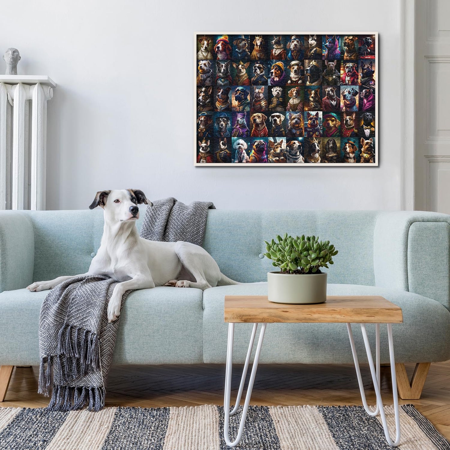 Portrait Dog Puzzle Dogs Puzzles 1000 Pieces for Adults, Animal Jigsaw Puzzles for Adults, Funny Puppy Bulldog Jigsaw Puzzle Family Collage Puzzles as Home Decor