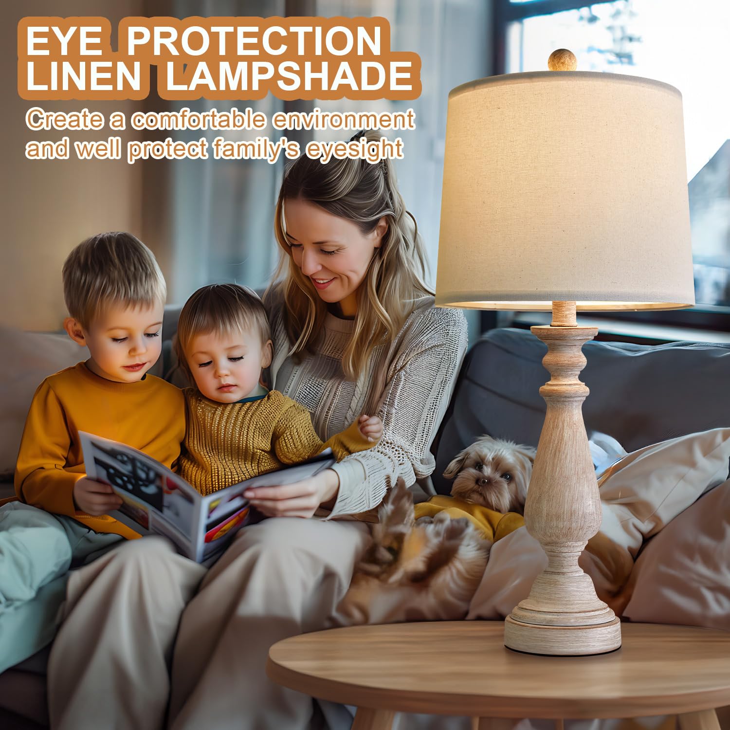 - 【Rustic & Vintage Table Lamp】:The perfect combination of Beige Washed resin lamp body and linen lampshade presents a retro and elegant appearance. The classic design adds a touch of classicism to any corner of the house.(Assembly Required)