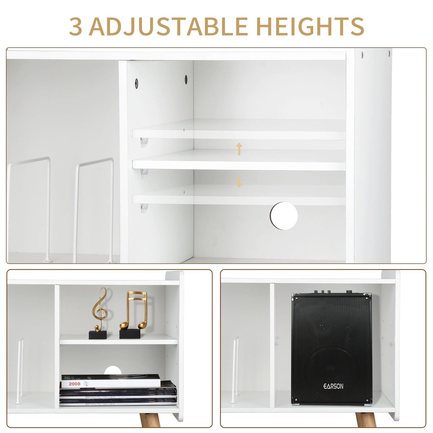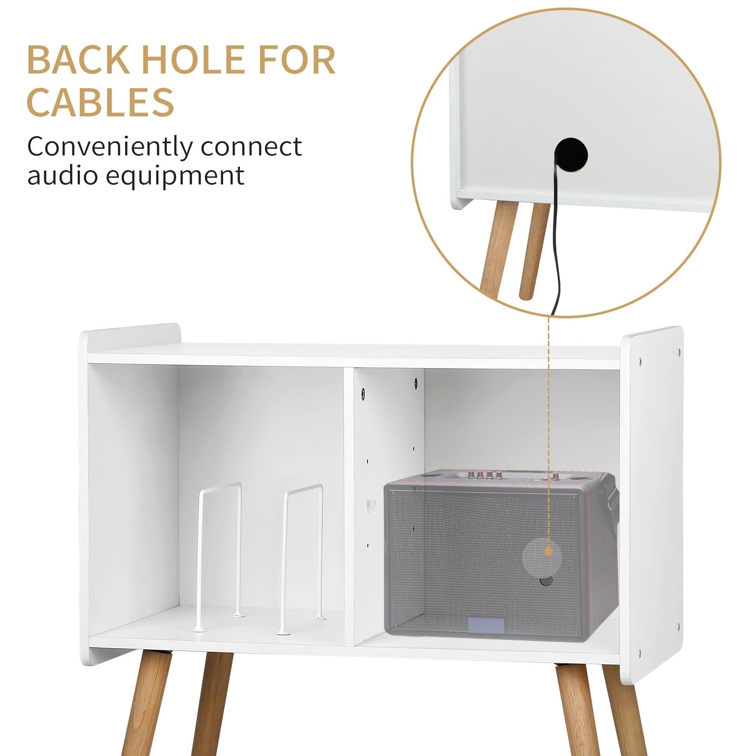 Possile Mid-Century Record Player Stand, Vinyl Record Cabinet Holder with Storage Up to 100 Albums, Record Player Table for Living Room Bedroom Office, Turntable Stand with Wood Legs, White