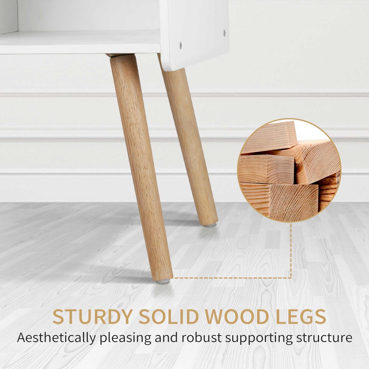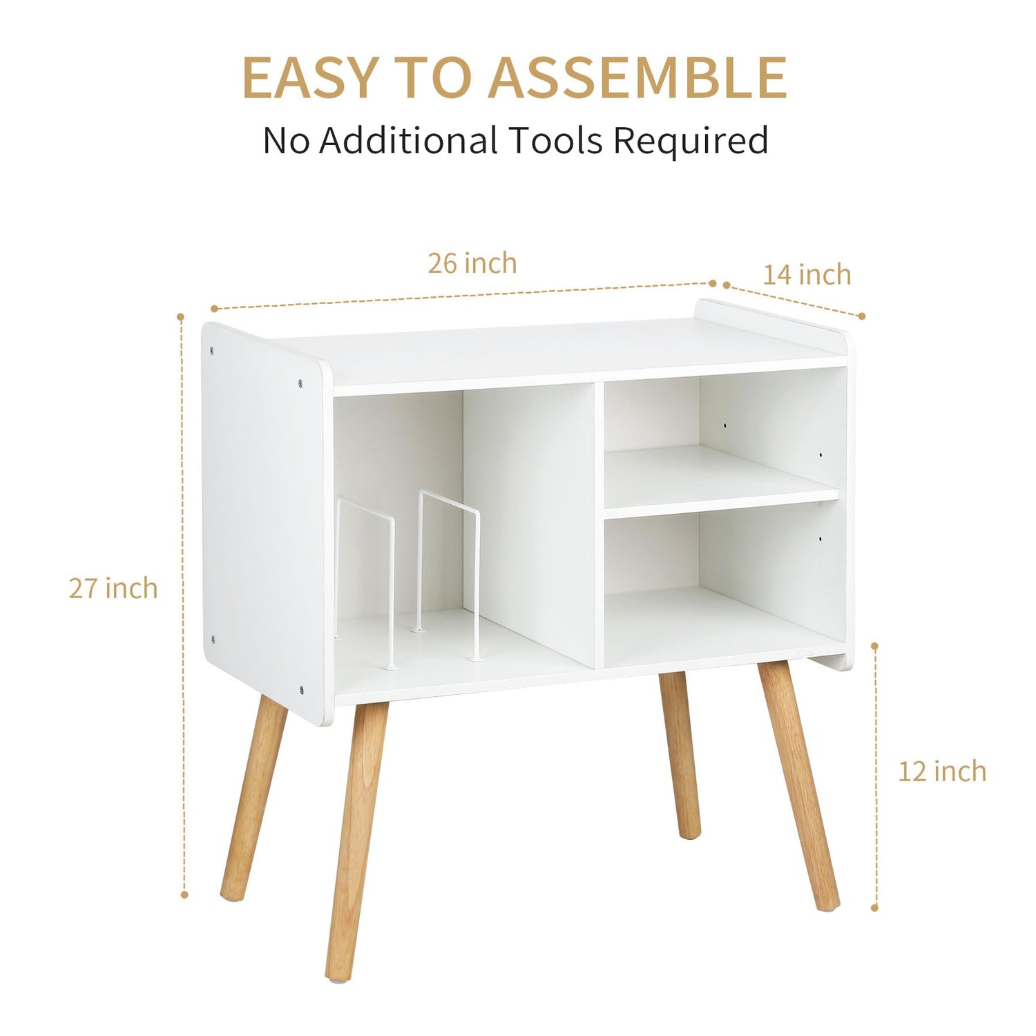 - [Mid Century Style Record Player Stand] This vinyl record storage holder uses a modern simple white natural wood grain design with solid wood decorative legs. It retains the retro wood texture without losing the modern pop style. If you like mid-century modern design and large capacity, then this record player table is your best choice.
