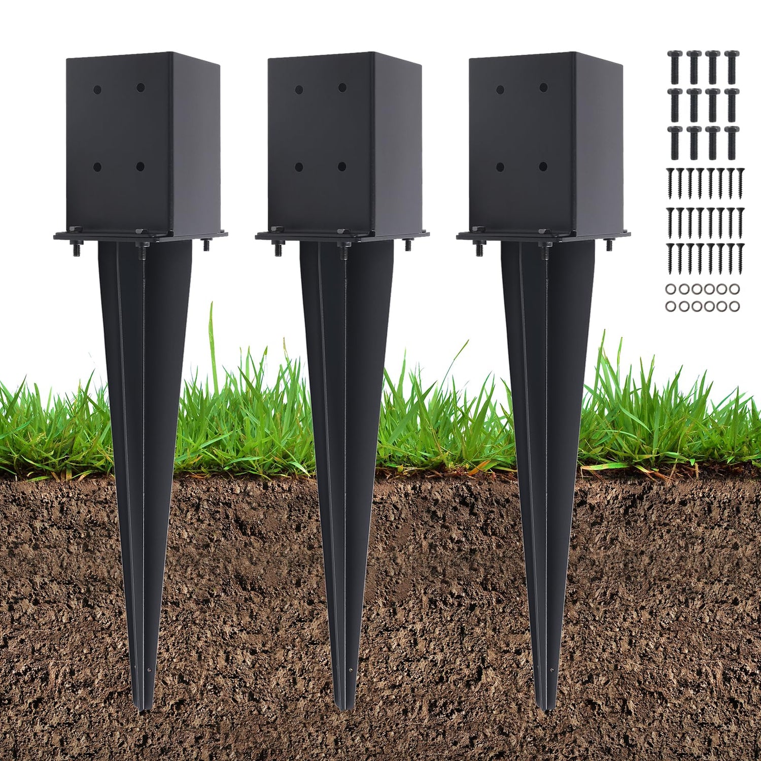 POSTYBAY 3 Pcs 4"x4" Fence Post Anchor Ground Spike 22"(Internal 3.6"x3.6"), Fence Stakes Post Base with Black Powder-Coated for Deck,Fence,Porch,Railing,Mailbox