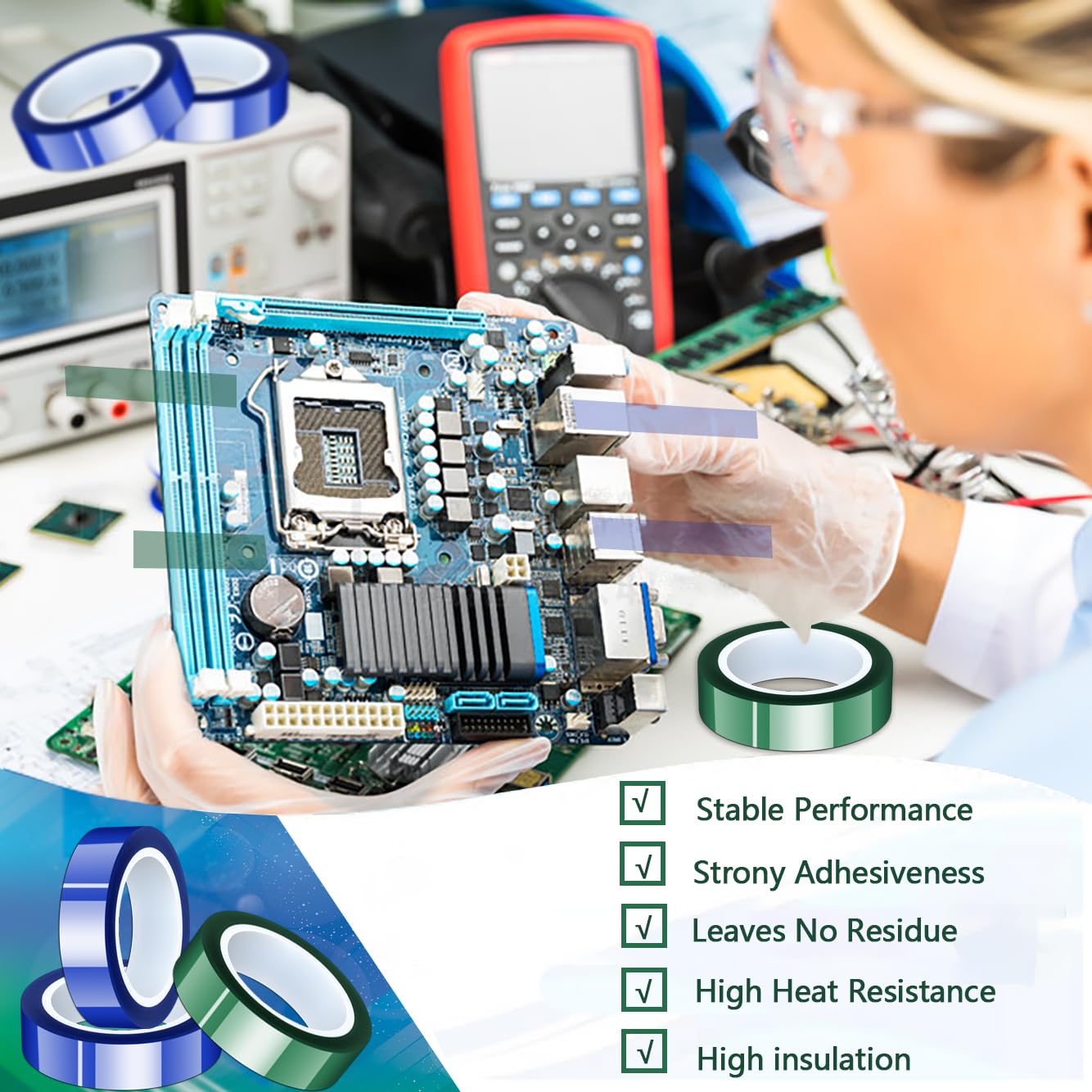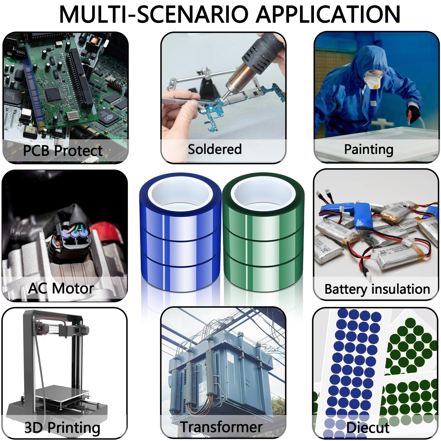 - 【Wide Application】: High-temperature adhesive tape can be used for epoxy resin process, PCB board high-temperature masking, PCB board tin baking, gold-plated masking, LED dot blocks, digital tubes, LED electronic display panels and other high-temperature masking.