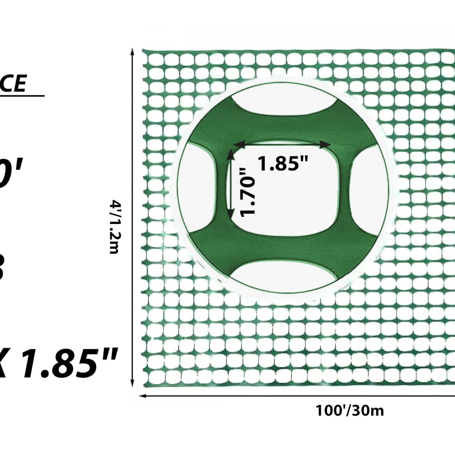 PotatoLife Plastic Mesh Fence Safety Fence, 4'x100' Roll with 100 Zip Ties, Resuable Temporary Netting for Garden Fencing, Construction, Snow Fencing, Animal Barrier, Poultry, Deer, Patio, Green