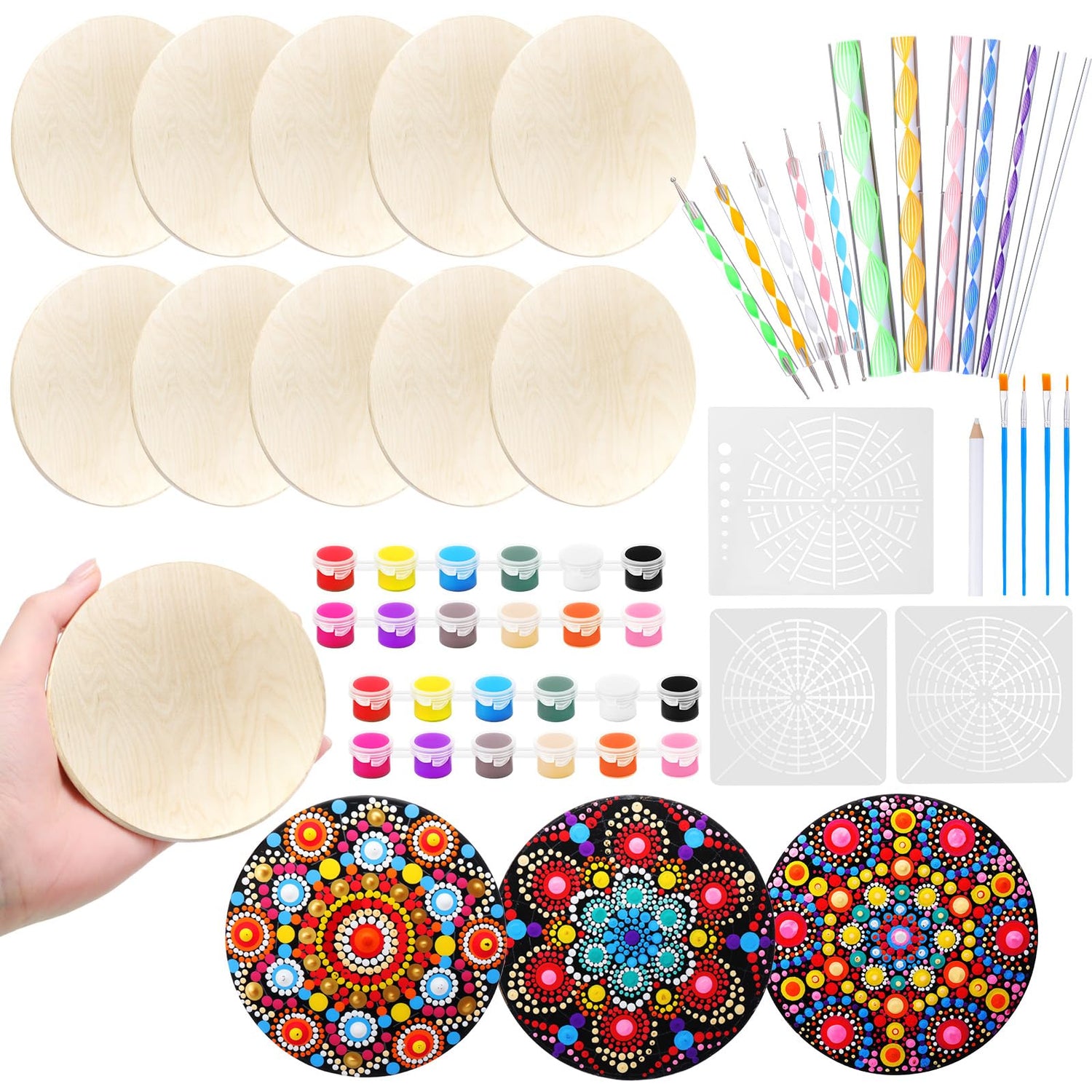 - Enhance Skills and Expression: our wooden mandala dot painting kit is designed for both adults and teens, offering a captivating activity that boosts creativity, emotional expression, and artistic skills; Whether at home, school, or camp arts and craft activity, rock painting becomes an ideal artistic and craft activity that brings families and friends together for joyful, skill-enhancing experiences