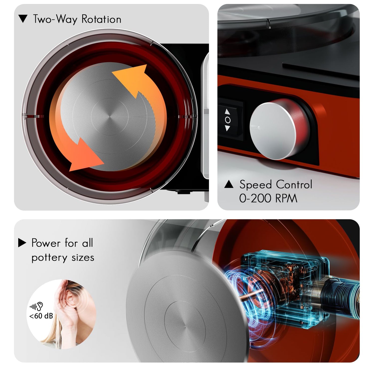 - Customizable Speed Function: Personalize your clay molding experience. Our pottery wheel provides an adjustable speed feature, adept at accommodating various artistic styles, techniques, and proficiency levels.