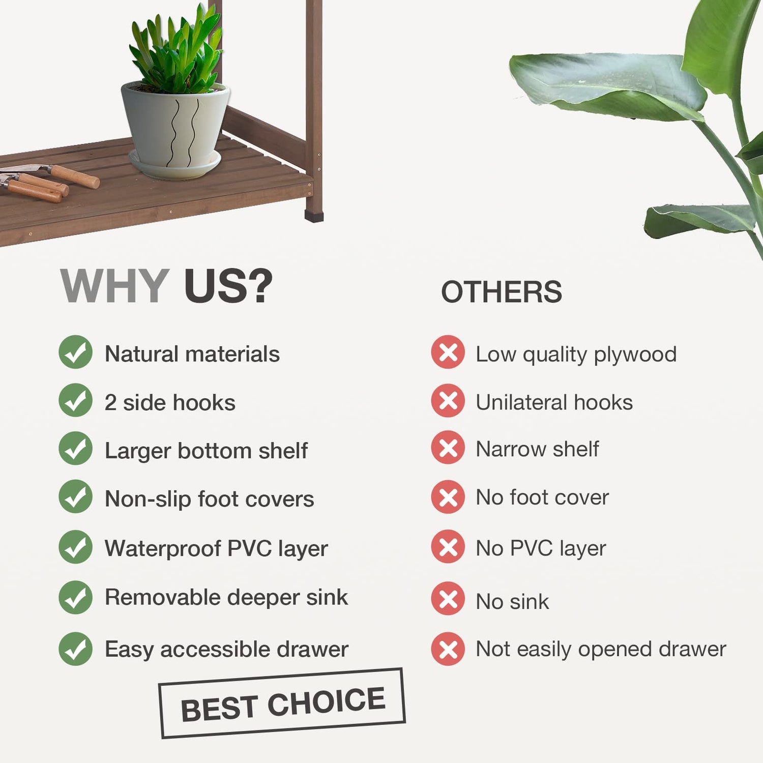 - đ±ăFlexible Potting StationăRemove the LID & PVC LAYER, you can use the sink to pot plants, prune plants and mix soil; Close the LID & PVC LAYER,hide the sink and keep the workspace clean.