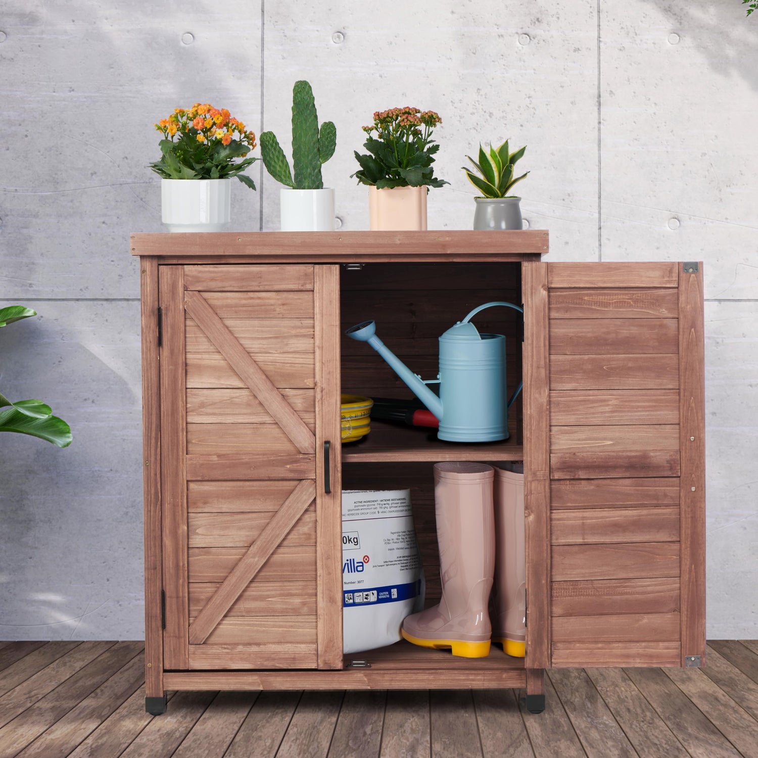 - Premium Wood Material: Our Potting Bench Table storage cabinet, made from premium cedar wood. The water-based coating and brown finish provide a beautiful rustic look and ensure durability for outdoor use
