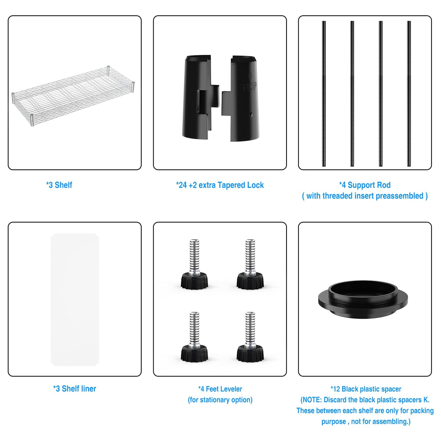 - [EXTREMELY DURABLE] - Wire shelving made of heavy steel, it has excellent rust resistance and oxidation resistance. Our wire shelf liner is crafted to provide unparalleled quality, longevity, function and beauty. Better quality thicker than the competition. The 3 tier shelf unit passed NSF certified, safe and reliable. Storage rack are perfect addition to home, office.