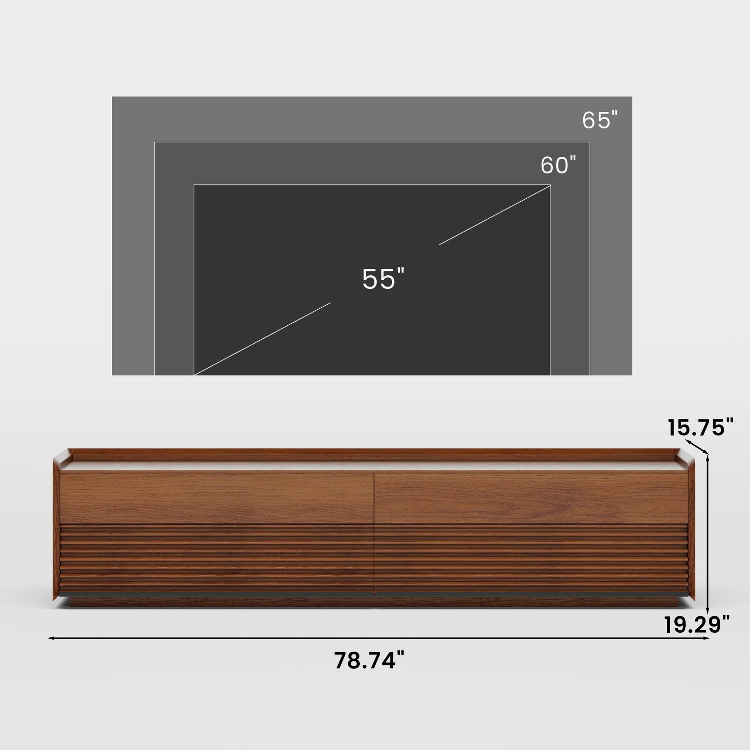 POVISON Mid Century Modern TV Stand, 78.74" Entertainment Center with LED Light, Walnut Solid Wood TV Console for Living Room, TV Stand with Storage