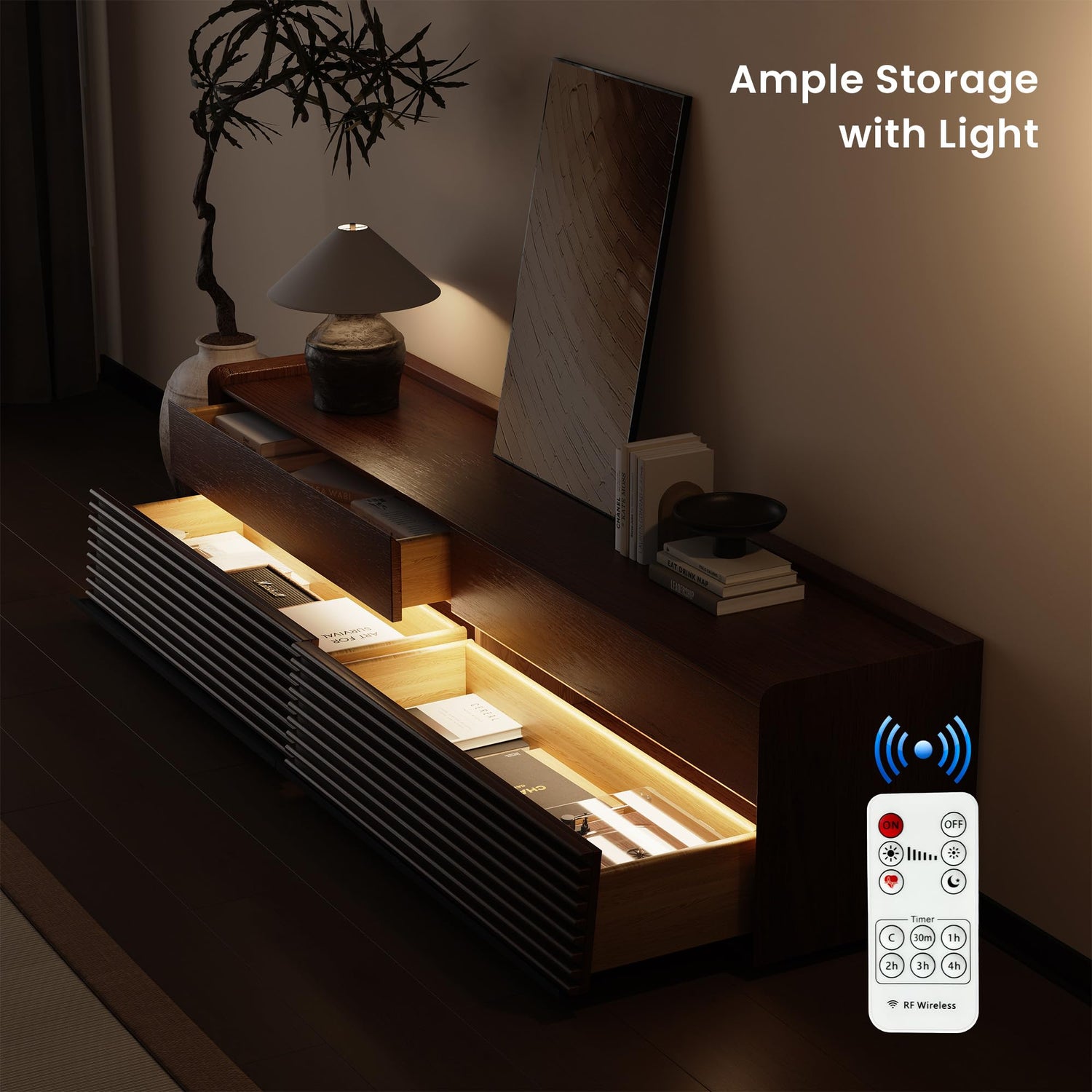 - 【Integrated LED Lighting】 Enjoy the convenience of built-in LED lighting. The warm, 6-level adjustable lighting with remote control enhances the visual appeal of your TV console and makes your displayed items stand out.