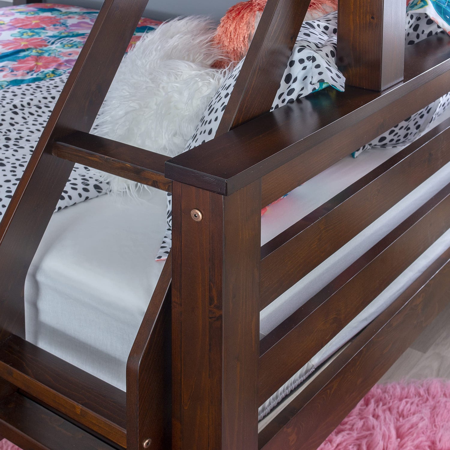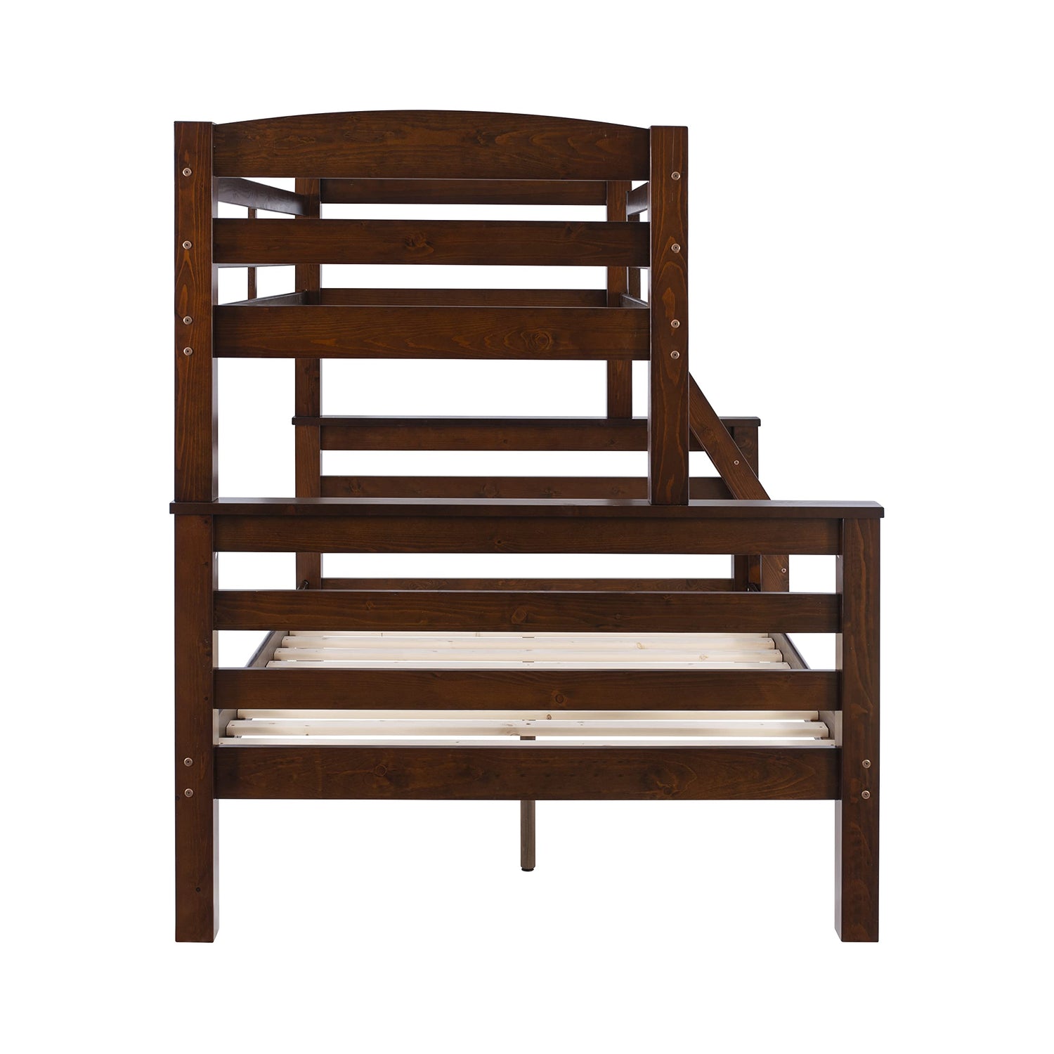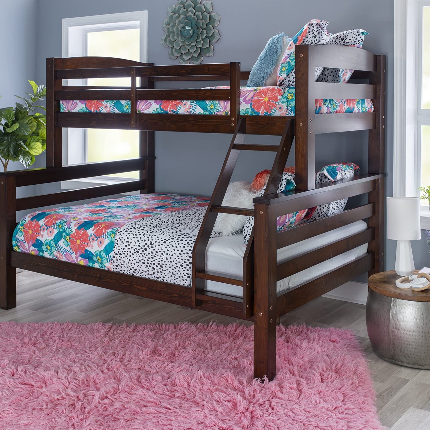This stunning bunk bed features a warm, rich espresso finish that seamlessly complements a variety of decor styles. It encompasses a twin bed resting above a full bed, making it an ideal solution for siblings sharing a room or accommodating extra guests. The built-in ladder provides easy access to the top bunk, while ensuring safety with robust guard rails that help prevent accidental falls.