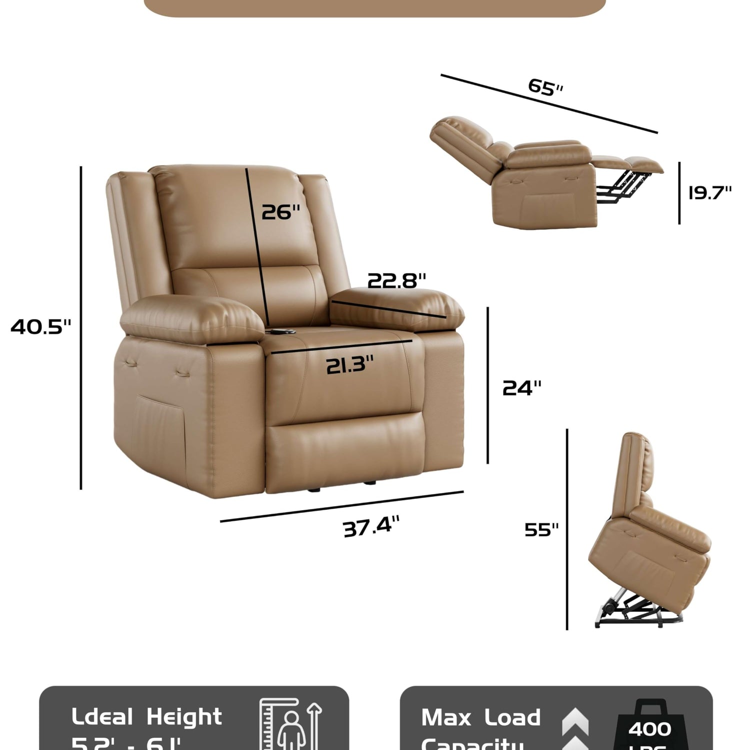- 【Product Dimensions】The Power Lift Recliner Chair measures 38.6 x 37.4 x 40.6 inches, seat width: 21.3 inches, weight capacity:400 lbs, making it a sturdy and spacious choice for seniors and those with limited mobility