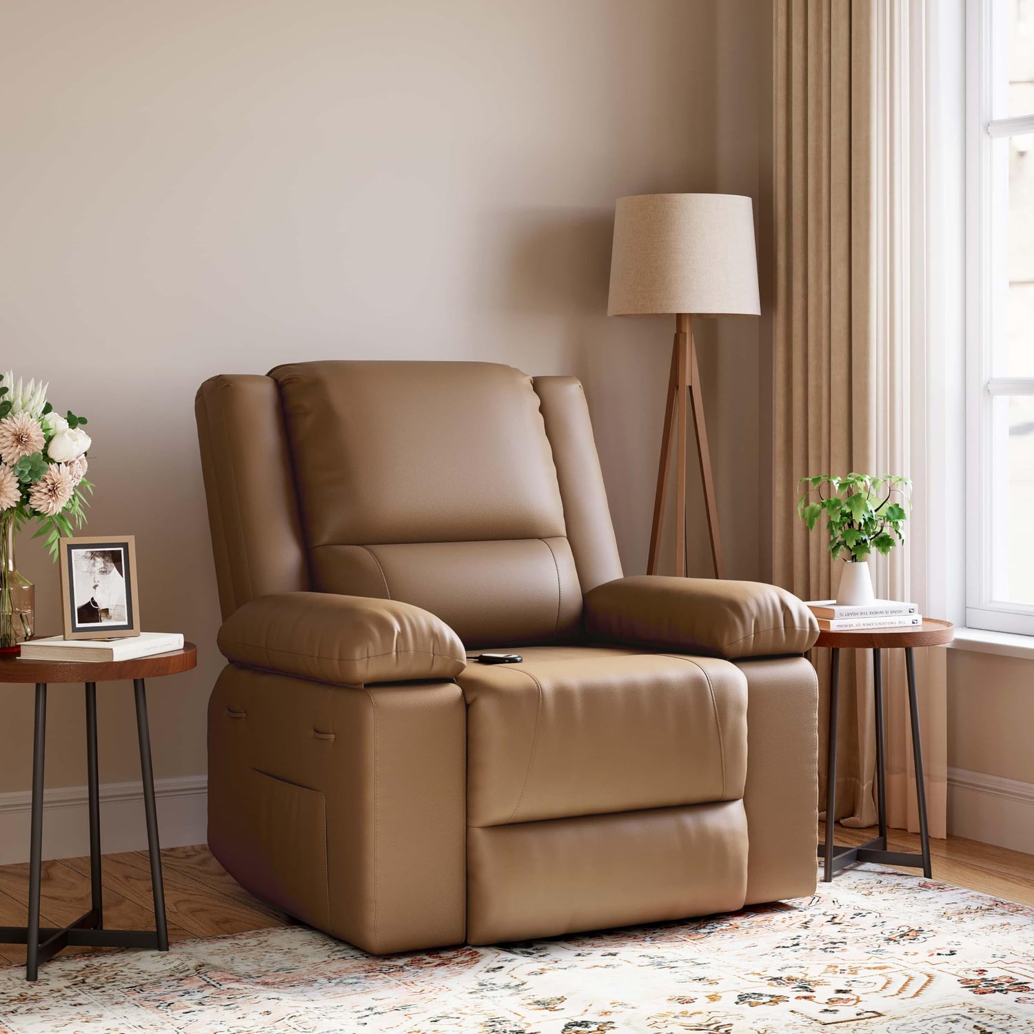 - 【Premium Quality Materials】Crafted from high-quality faux PU leather, this recliner is both wear-resistant and waterproof, ensuring long-lasting durability. The robust metal frame provides a solid foundation, guaranteeing safety and stability for daily use