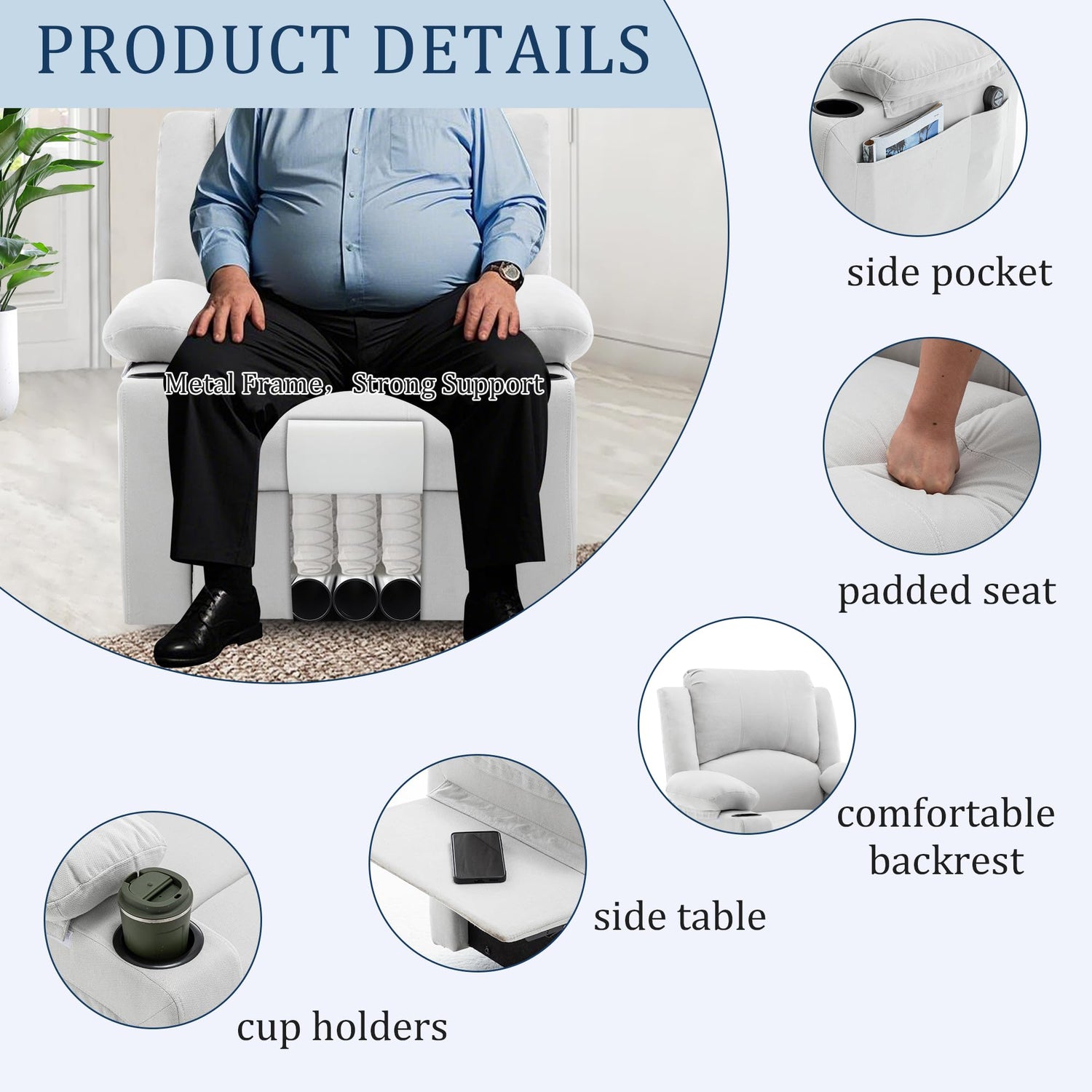 - 【High-quality materials Chair】The fabric nursery chairs are made of breathable fabrics combined with classic structural mechanics, uses a sturdy chic frame with a heavy-duty steel mechanism that provides excellent support and stability.Easy to clean.The recliner is filled with high-density sponge pads to ensure long-term support and provide a comfortable seating experience.Its stable design effectively prevents rollover.