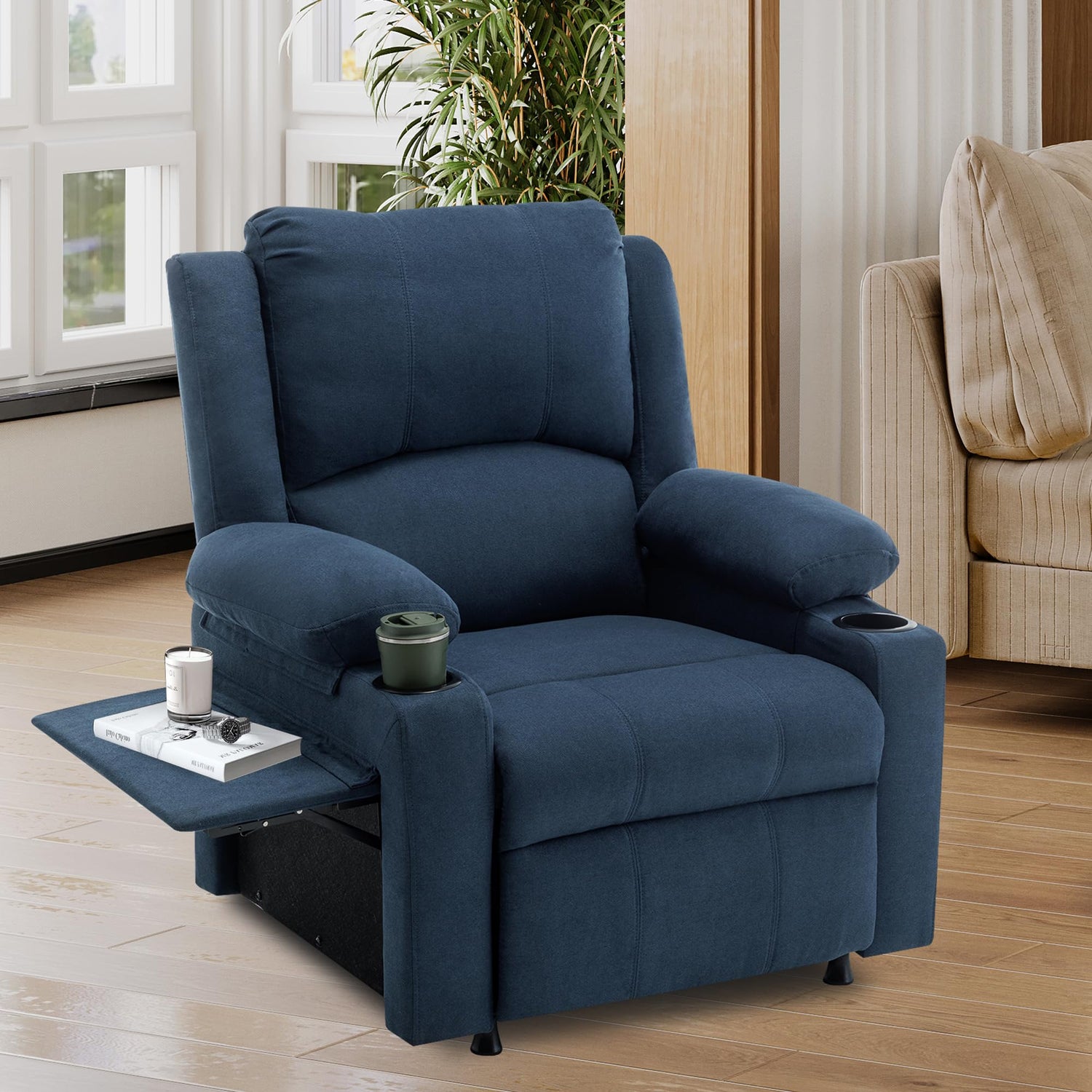- 【Recliner Chair for Any Space】Whether it's a large, spacious living room,a reading room,or an RV on the go,this nursery glider recliner provides comfort and adapts perfectly to any decor.An extended footrest and a small tray table for complete relaxation, making it perfect for activities such as watching television, sleeping, and reading. Also you could put the coffee or drink on the tray table.Its design ensures that you'll have a relaxing corner even when space is limited.
