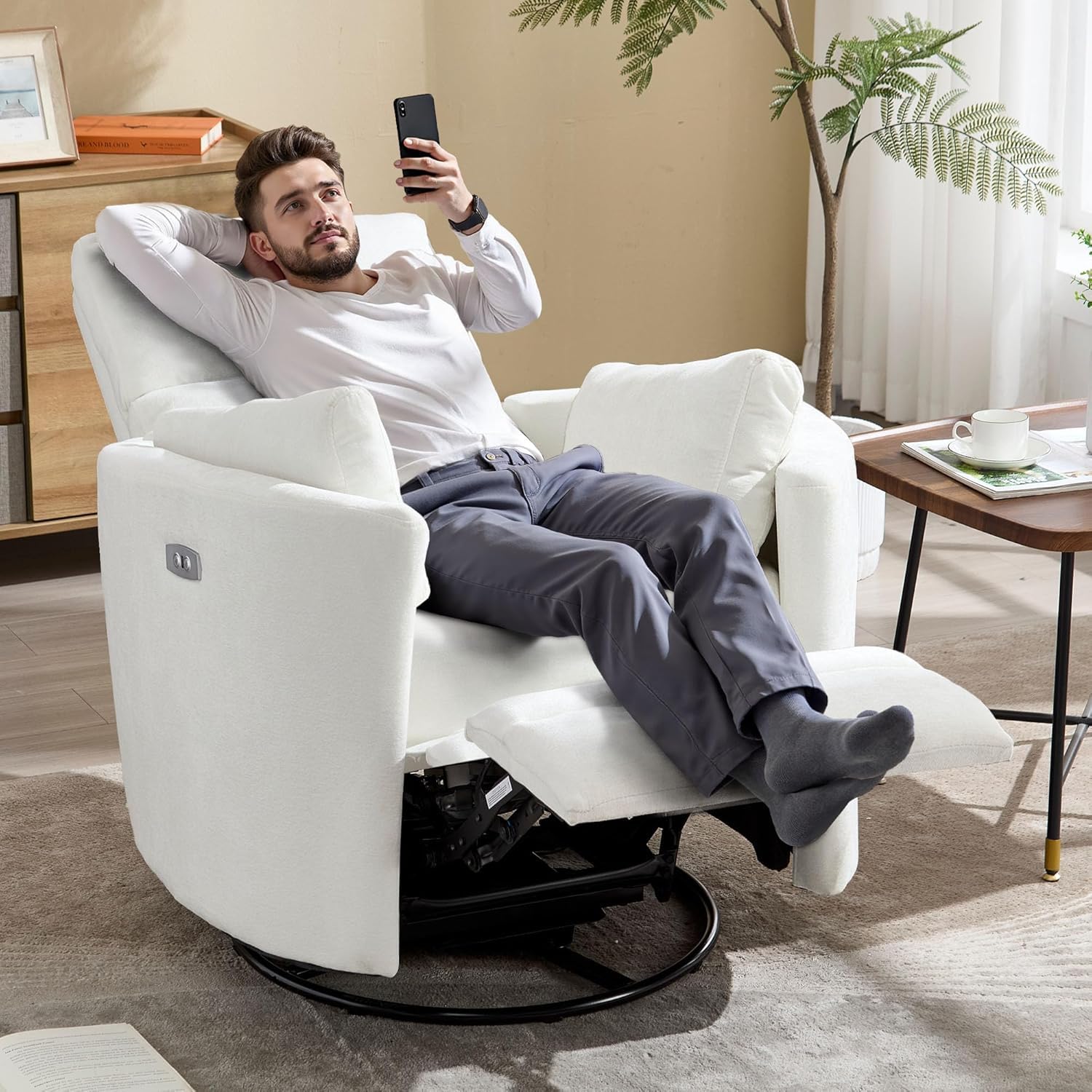Power Recliner Swivel Glider Rocker Recliner Chair Nursery Rocking Chair Upholstered Adult Rocking Chair with 2 Pillows for Living Room Bedroom(White, Power-Driven)