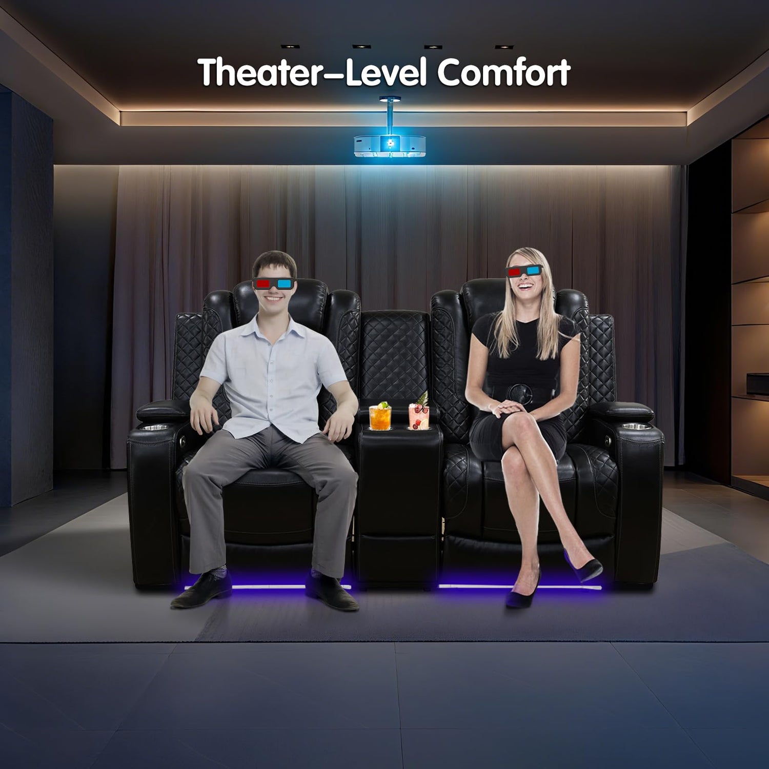 - Ambient LED Lighting for Home Theater Seating: This LED recliner loveseat features soft ambient lighting under the base, adding a modern touch to your home theater. The glow enhances immersion for movie nights, gaming sessions, or quiet evening lounging.