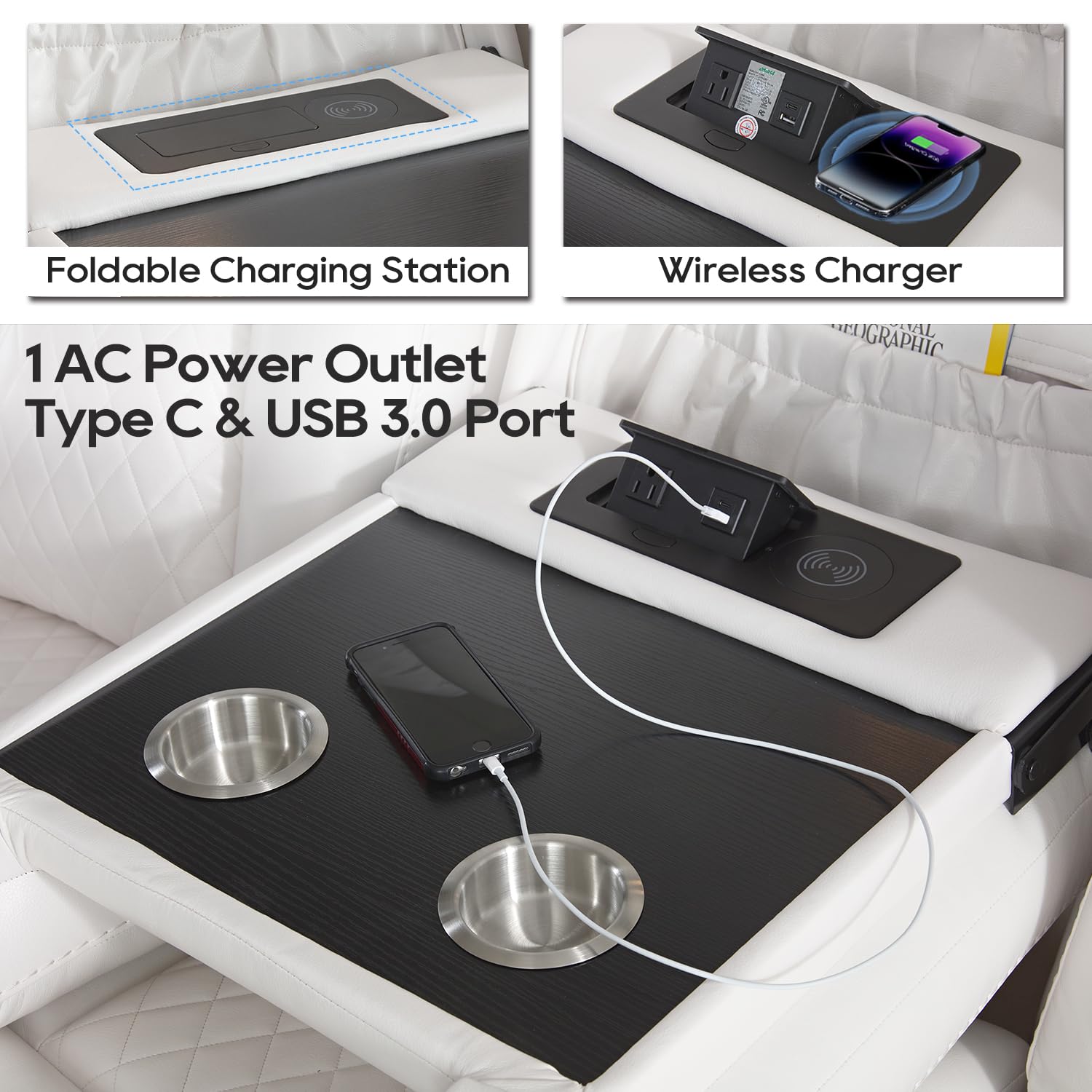 - Convenience made easy: Say goodbye to clutter with concealed storage. Two consoles featuring ample storage space and cup holders, ideal for keeping TV remotes and magazines neatly organized. You can enjoy chatting over coffee during your leisure time. USB ports on both sides of the recliner allow for device charging while relaxing on the couch, eliminating worries about short charging cables when your phone battery runs low. Plus, the sofa's outer armrests hide additional storage compartments for organizing your belongings.