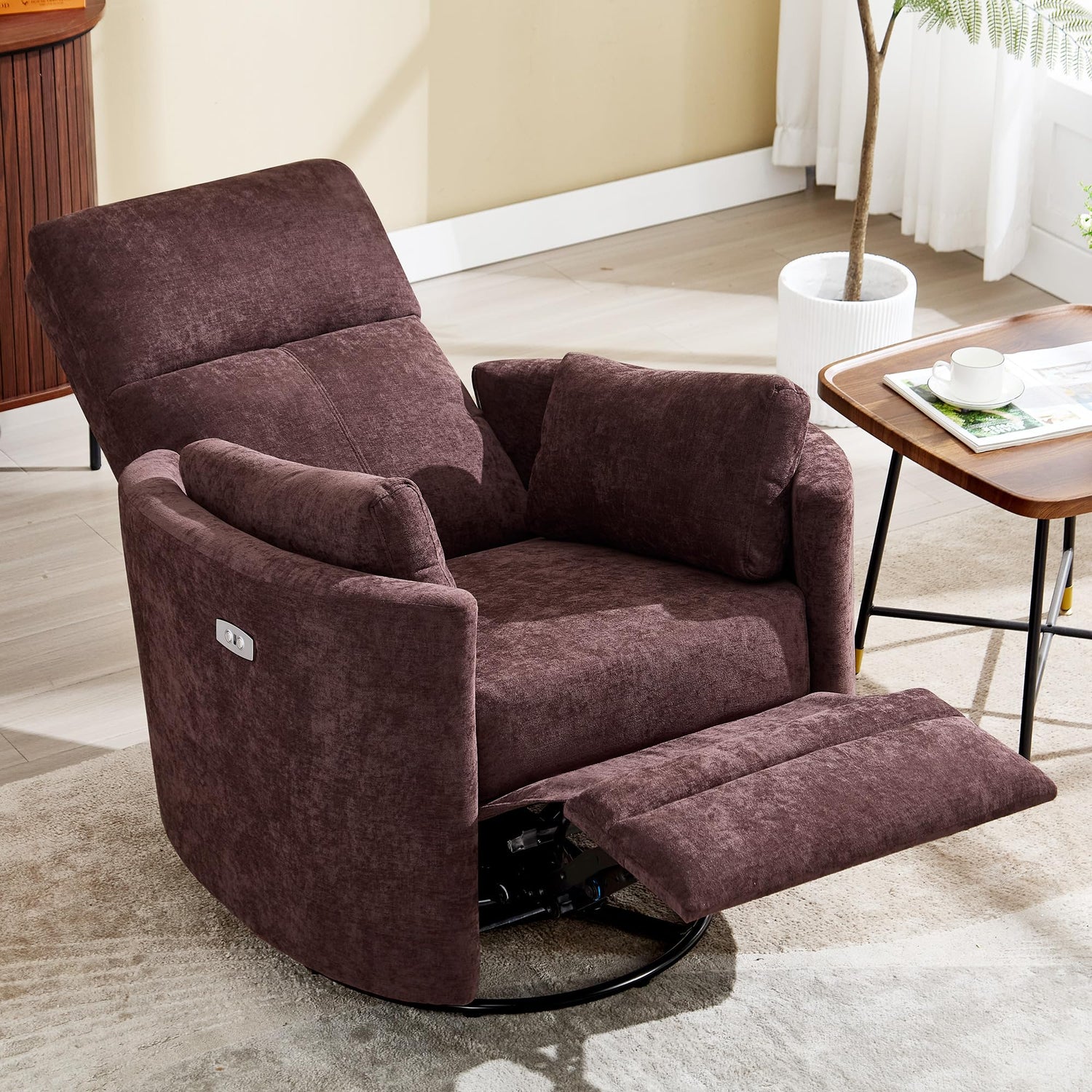 Power Swivel Glider Rocking Recliner,Electric Recliner Upholstered Nursery Chair Adult Rocking Chair with 2 Pillows for Living Room Bedroom(Coffee, Power-Driven)