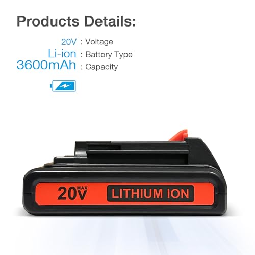 Powerextra 2 Pack 3.6Ah LBXR20 Battery for Black & Decker 20V Battery Max Lithium LB20 LBX20 LST220 LBXR2020-OPE LBXR20B-2 LB2X4020 Cordless Tool