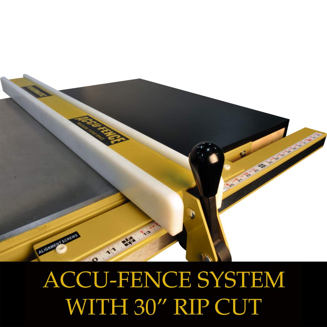 - Micro-adjust miter gauge with extension fence offers wider cross-cut support