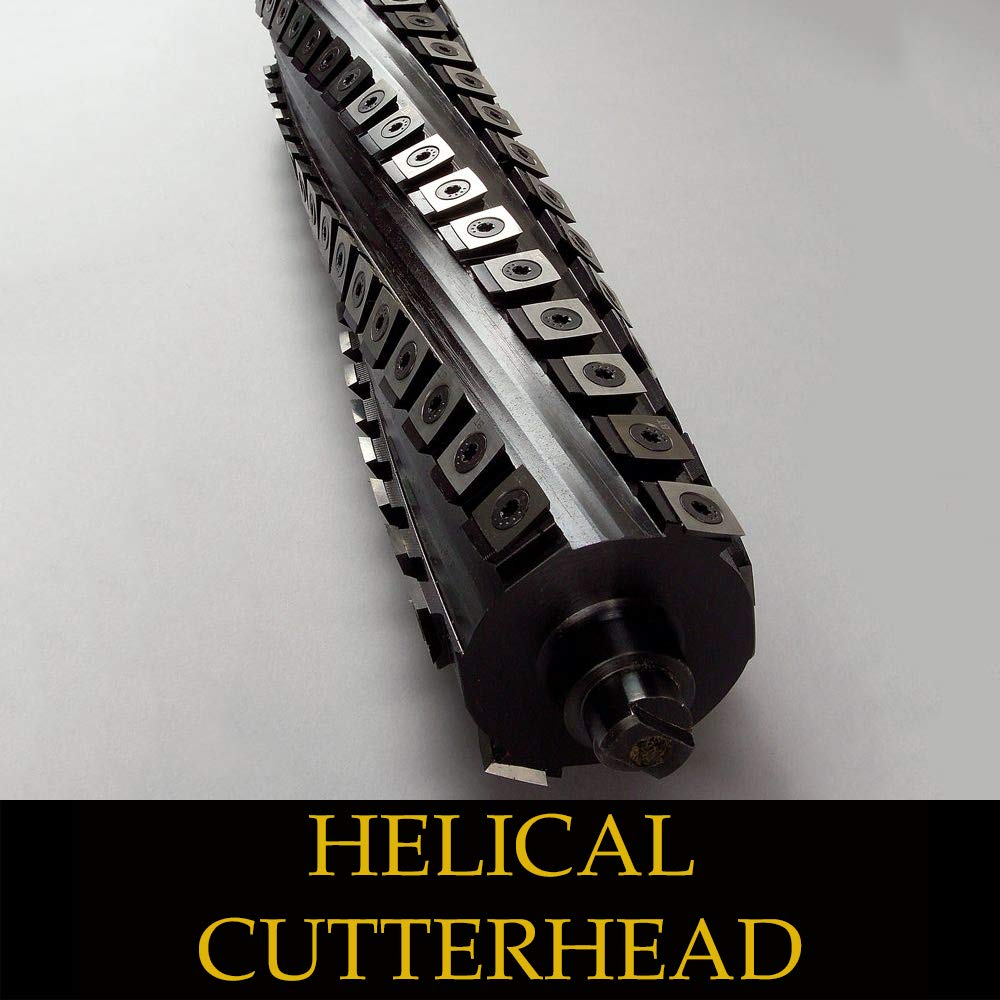 - Helical cutterhead with 125 four-sided carbide knife inserts for smoother, quieter cutting