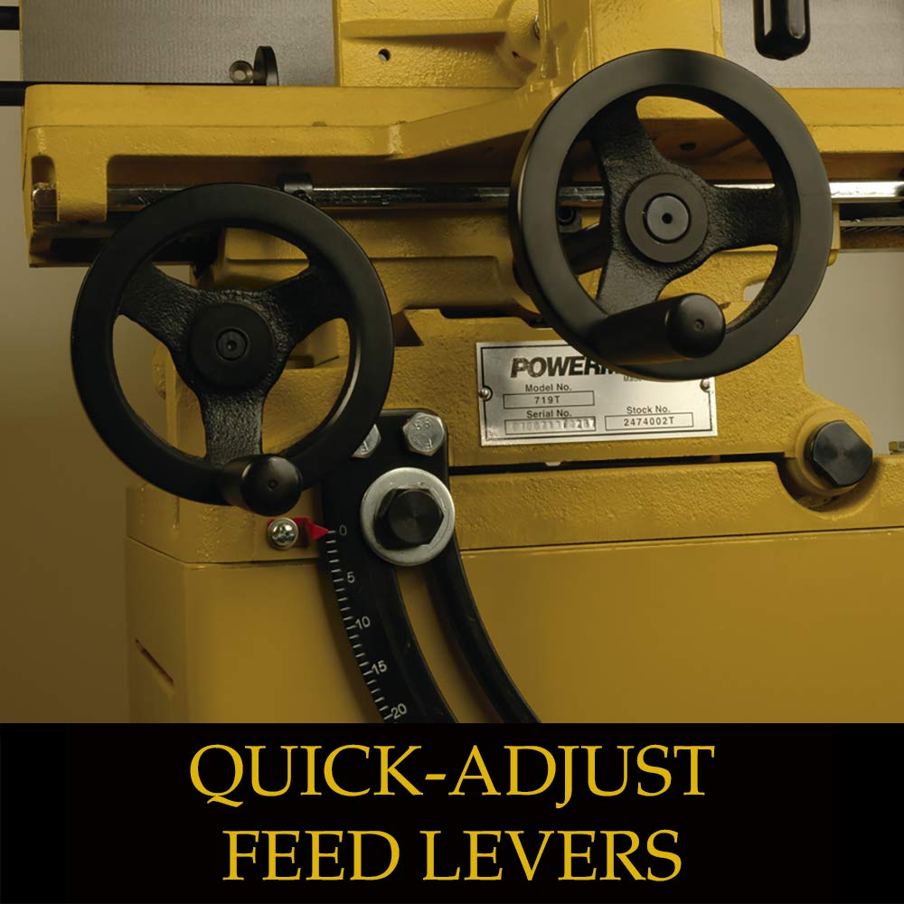 Featuring heavy-duty cast iron construction and a powerful 1-horsepower motor, the Powermatic 719T tilt table mortiser (model 1791264K) is designed to take on the most demanding mortising jobs. A heavy rack-and-pinion gear system is equipped with a spring-loaded, six-position, adjustable handle and a unique gas-filled shock for smoother mortising operations. The head is mounted with adjustable jibs, providing easy maintenance for years of trouble-free service.