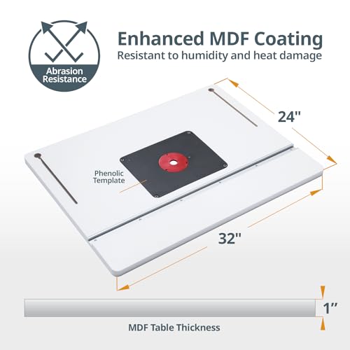- FUNCTION: Let you create a custom router table system with accurate router centering and mounting to meet all of your routing needs. Melamine coated MDF router table top provides a safe, solid, secure, and quiet routing solution for your intricate woodworking projects and universal workshop needs