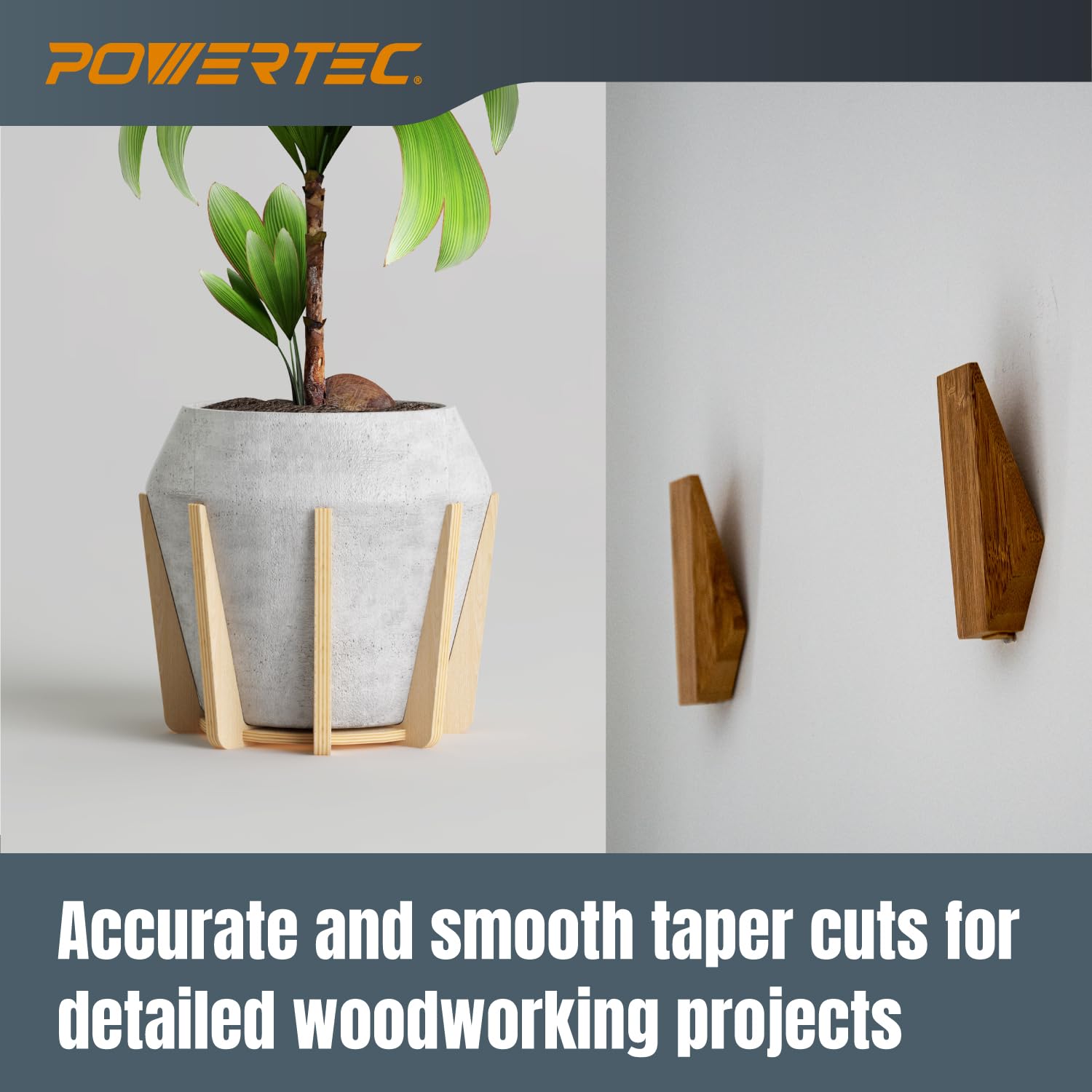 POWERTEC Table Saw Tapering Jig, Small Parts Taper Jig with 3/4" x 3/8" Miter Bar, Adjustable Hold Down Clamp, Non-Slip Grip Strips, Ergonomic Handle - Table Saw Jig Accessories (71875)