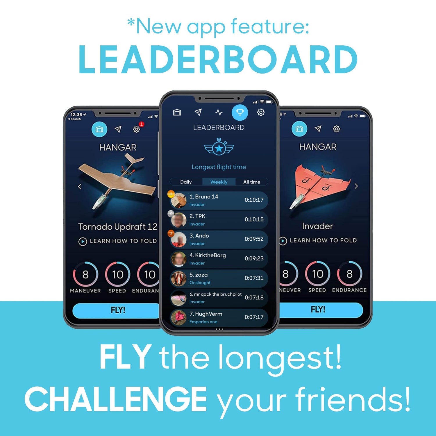 • CONNECTED FLYING - Pair your plane with the POWERUP App to maneuver your plane, keep a robust flight log, compete with other flyers on the leaderboard, and learn to fold new plane designs.