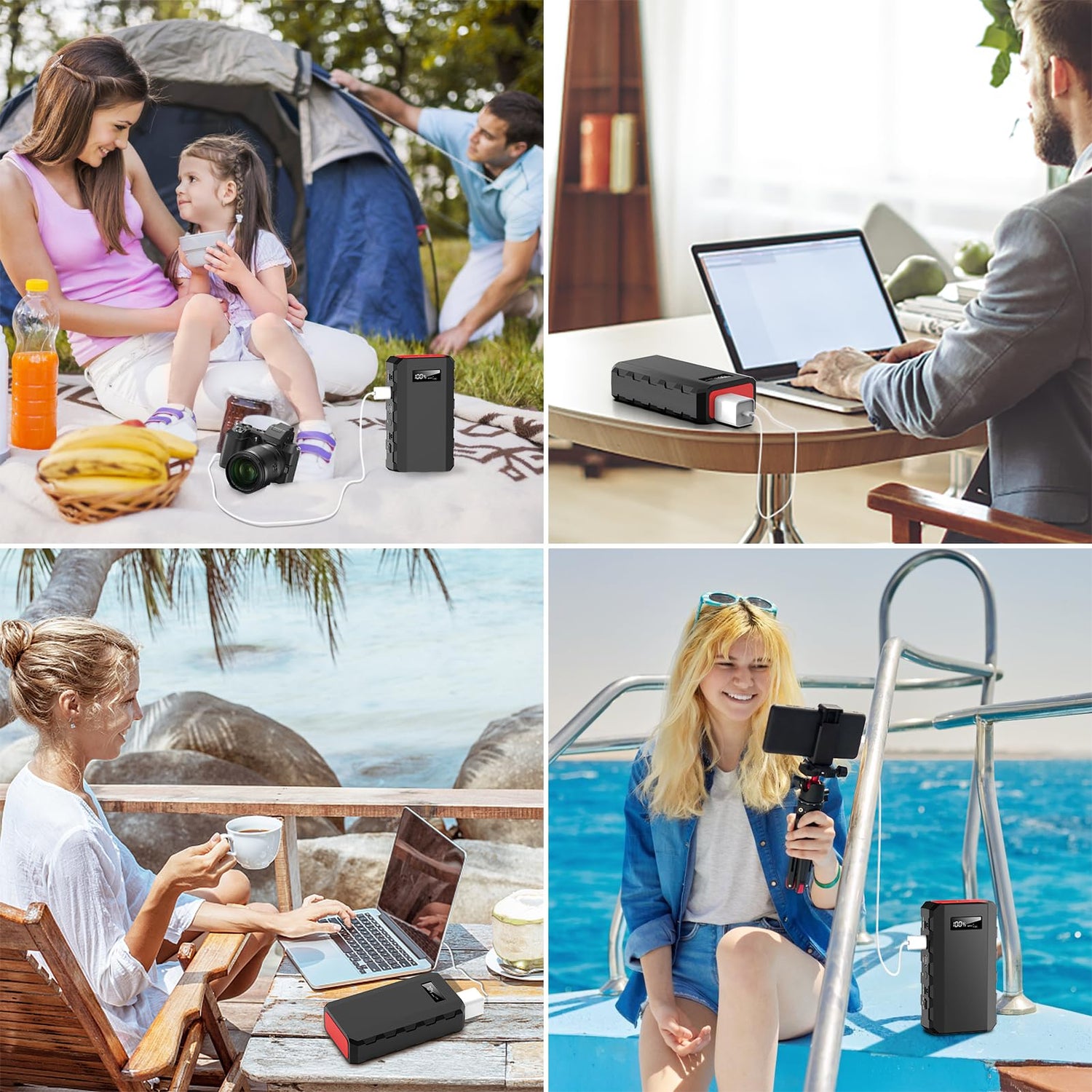 - Universal Charger: Our product includes QC3.0 9v/2A and 5V/3A two USB outputs, one 110V AC outlet, one DC 9~12.6V/10A (Max) output, which means this charger can power your multiple devices at once. It can charge your iPhone and Galaxy up to 8 times, or 2 times for your 12'' Macbook.