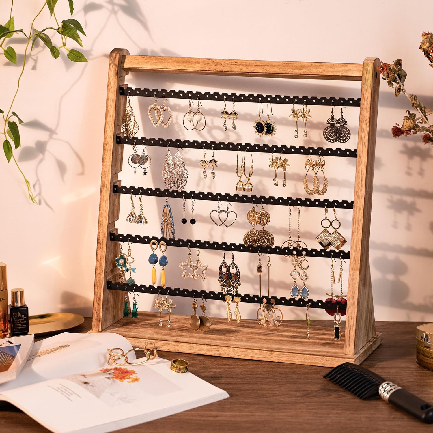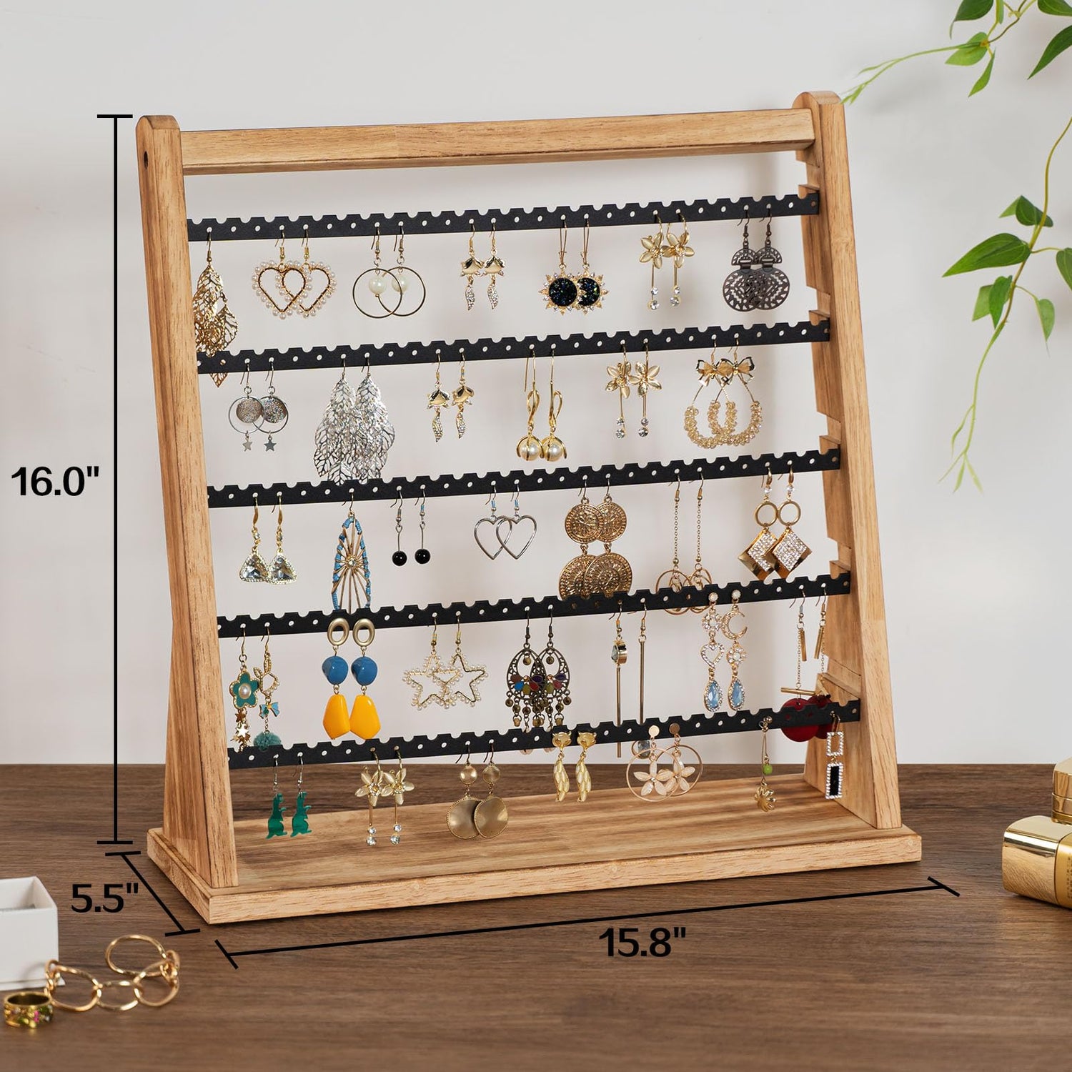 Poyilooo Earring Holder Organizer, Rustic Wood Earring Holder Stand, 5 Layer Jewelry Holder Organizer with 270 Earring Tree Holes Display Rack for Stud Earings & Hoop Earrings, Gifts for Women