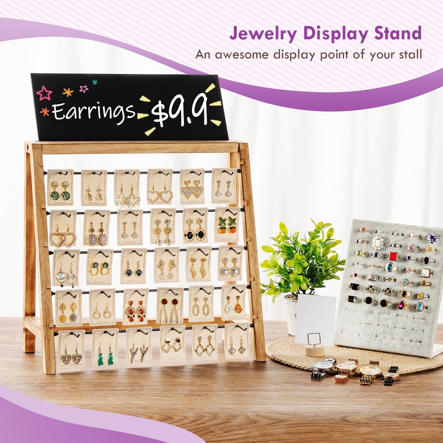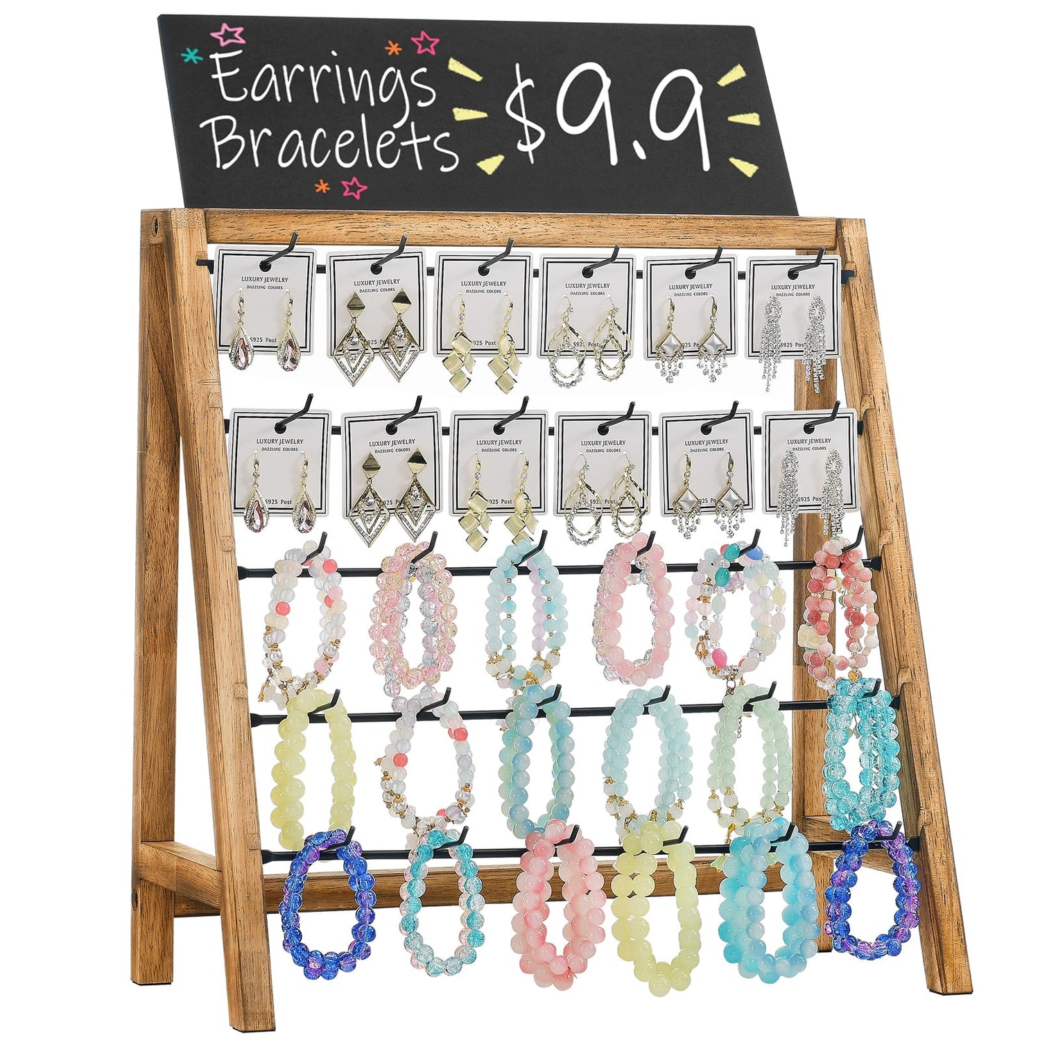 Poyilooo Jewelry Display for Vendors Selling, Wood Earring Bracelet Keychain Display for Vendors with Adversitsing Board 30 Hooks, Large Capacity Jewelry Holder Display Stands Rack for Earring Card