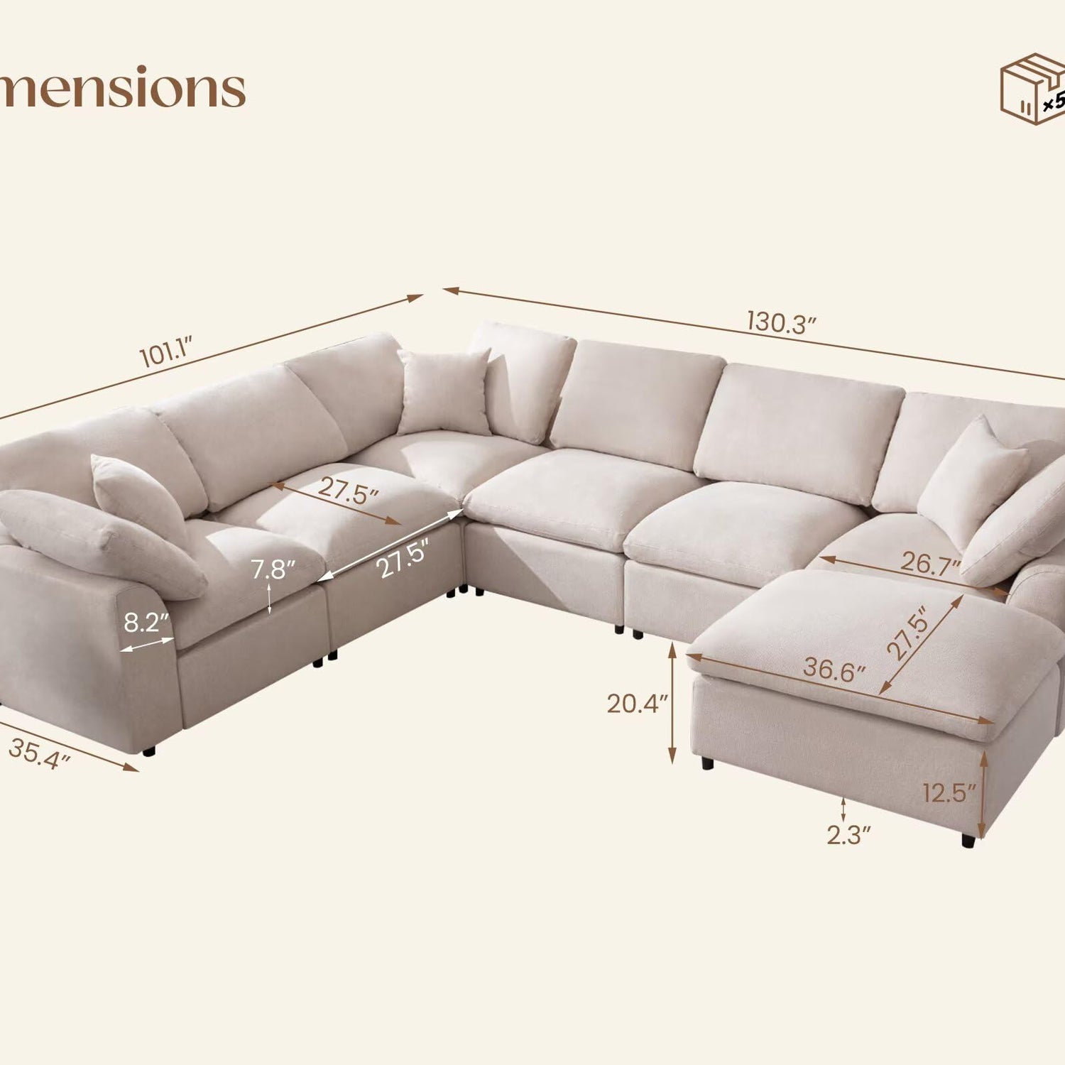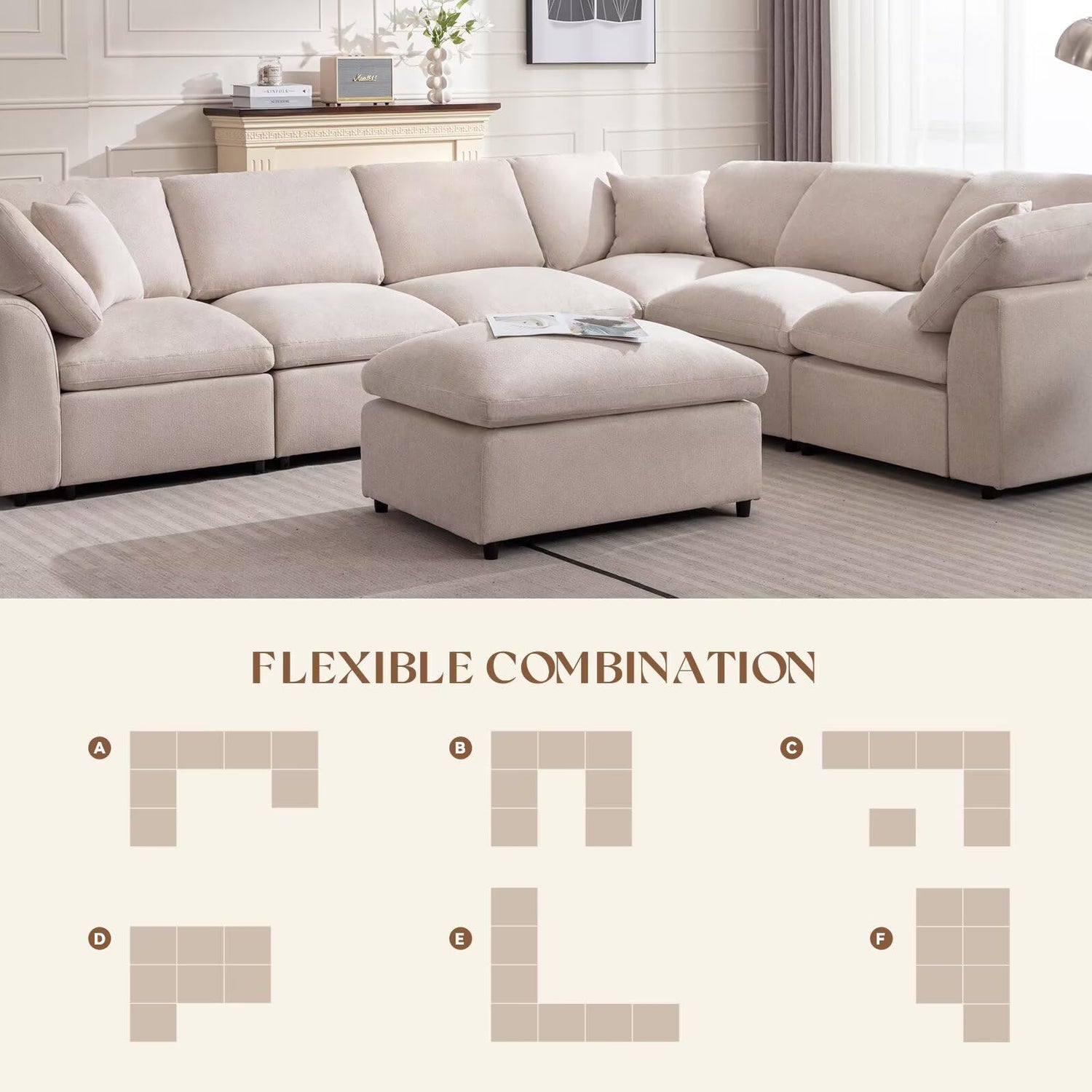 - Built to Last, Made to Enjoy: Made with a solid wooden frame, this large 7-seater cloud couch sectional offers long-lasting strength and stability. It includes 3 corner seats, 3 armless chairs, and 1 ottoman—durable, roomy, and ready for daily use, family time, and everything in between