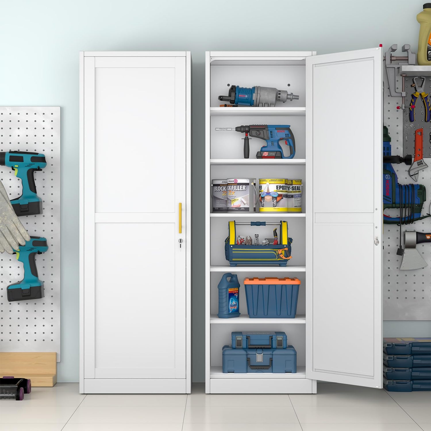 - 【2 MOUNTING OPTIONS】: The doors of this tall office file cabinets can be set up to open to left or right, ensuring it complements any space layout and ensuring optimal convenience no matter which way you assemble the doors. Also the shelf can be adjusted into 5 height to fit your variant storage needs.