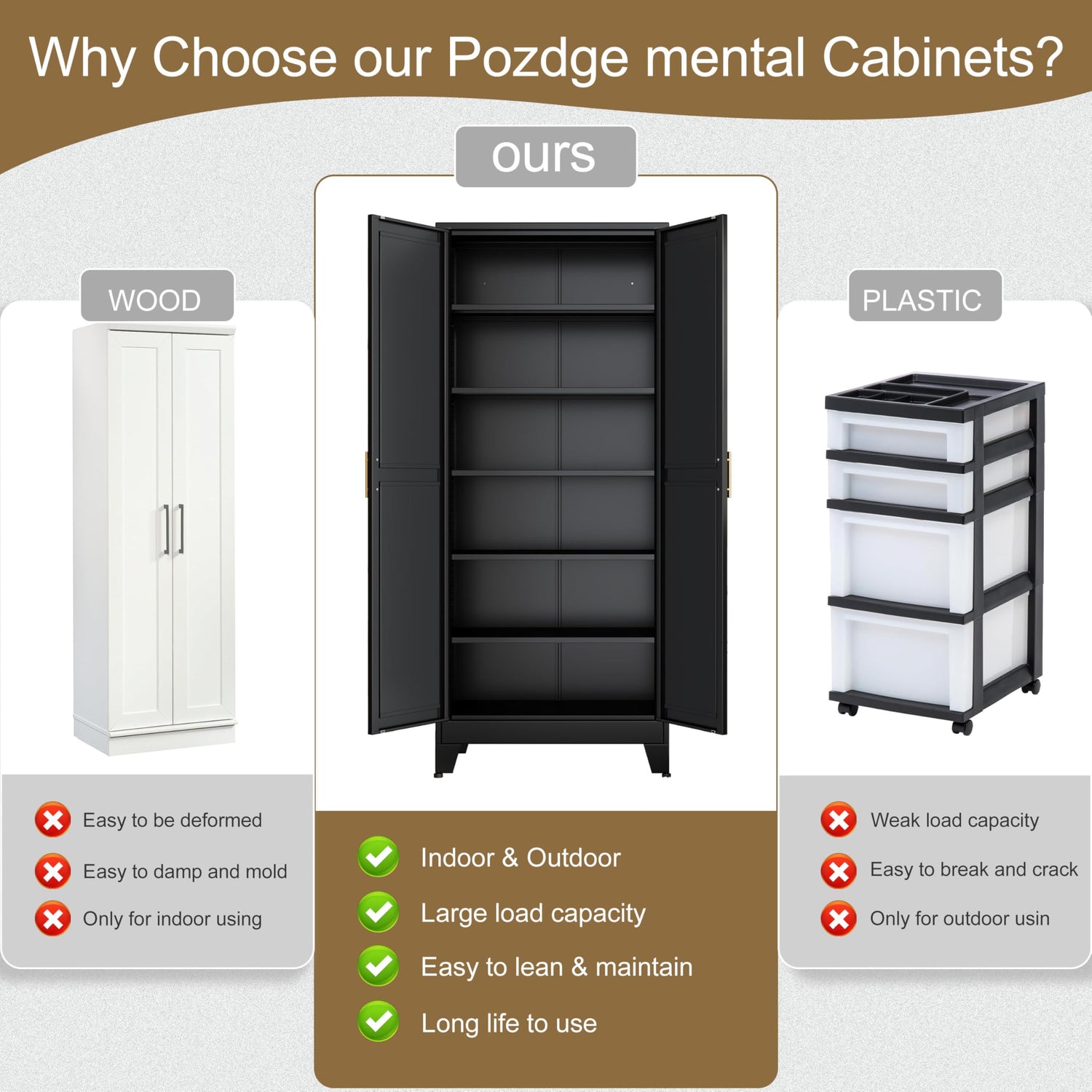 - 【HIGH QUALITY MATERIAL】: Metal storage cabinet is made of one-piece reinforced heavy-duty steel deluxe welded frame, which is sturdy and durable, not easy to deform, and the plate is treated with environmentally friendly powder coating, which is moisture-proof, corrosion-proof, rust-proof, and can be used for a long period of time.