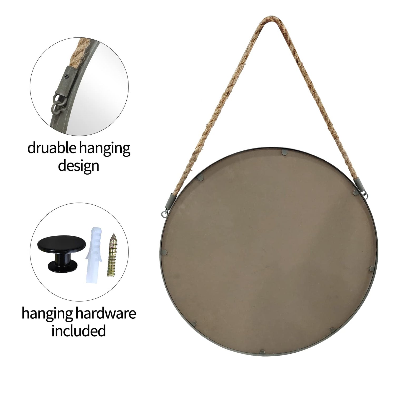 - 『 Easy Hanging』: The round wall mirror has a strong linen rope(diameter=0.4inch) and comes with a hook, easy for you to hang it.