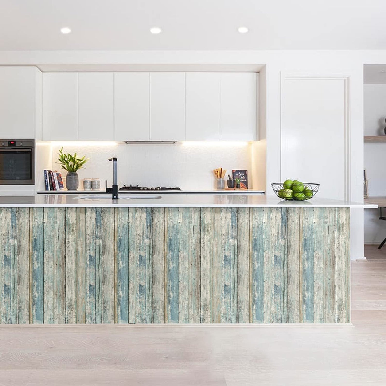practicalWs 17.71''×396.8''Blue Distressed Wood Wallpaper Self-Adhesive Peel and Stick Wall Paper Vintage Wood Panel Interior Film Surfaces Easy to Clean