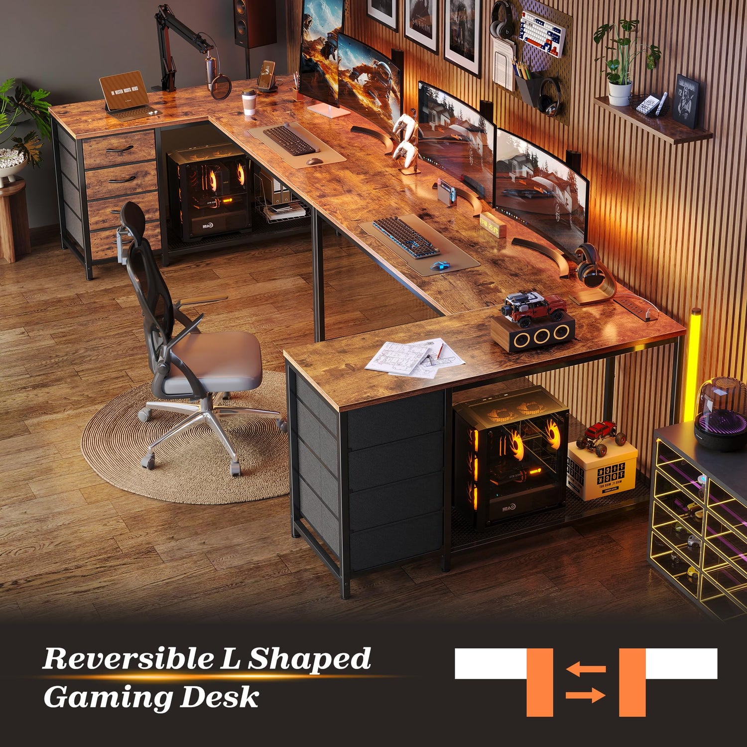 - 【Reversible L Desk with Storage】Utilize your corner space and get 2 distinct work zones with this work desk for home office that adapts to your workflow. Need one side for your laptop and another for your printer, craft projects or gaming setup? This home office desk wraps around you like a command center, giving you more focus than a straight desk ever could. With its reverisble design, this large desk is deal for multitaskers and various home layouts