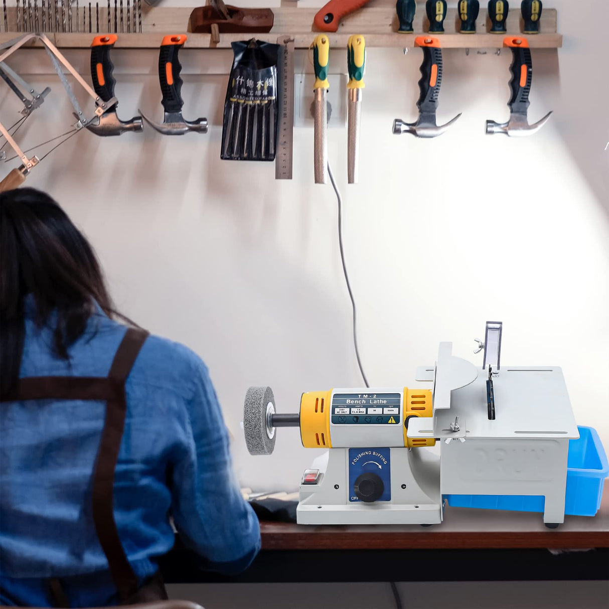 - 【DIY HELPER FOR MEN】The ultimate desktop companion designed to handle all your DIY projects with ease. Its powerful 320W high-speed motor, low vibration, and infinite speed control make it perfect for polishing metal surfaces, drilling through wood and plastic, and more. Also a great gift idea!