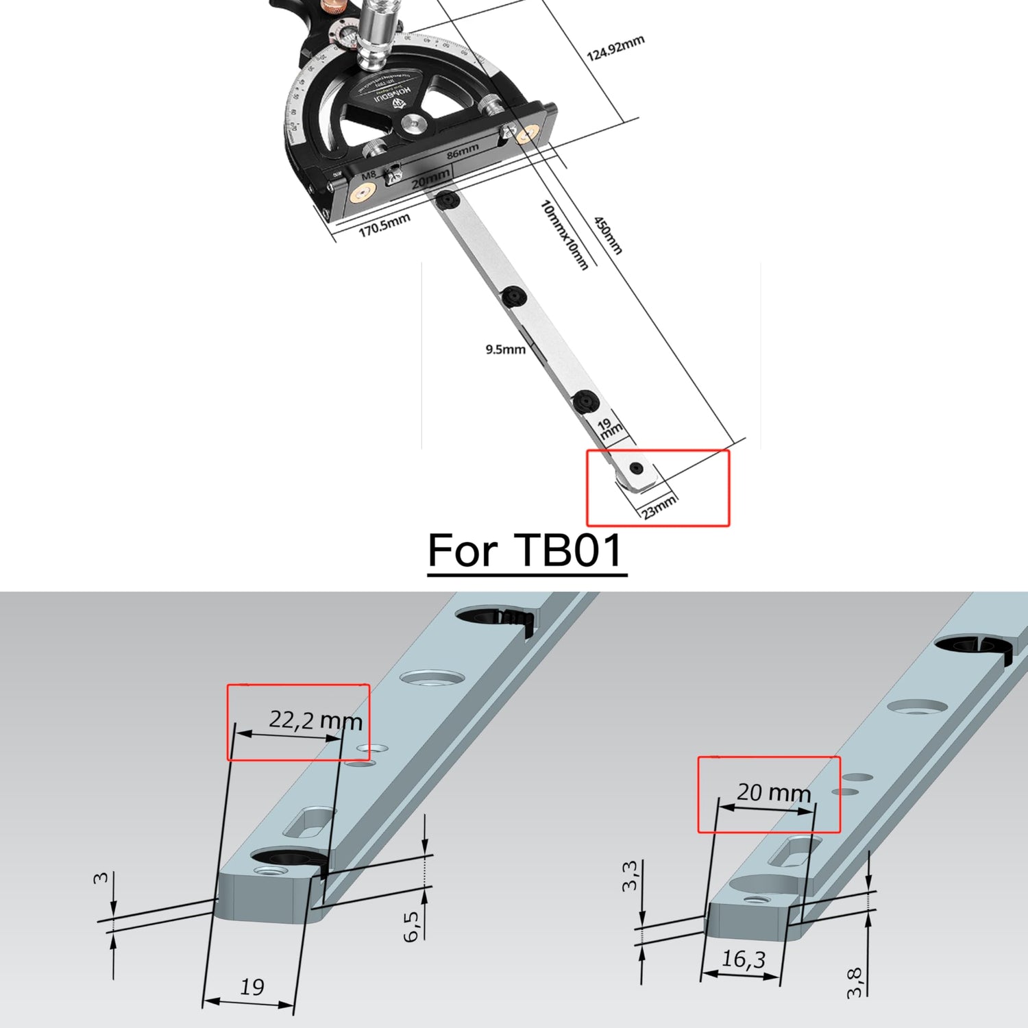 - Table Saw Tenon Gage Fence with Scales: Table saw tenon gauge fence with metric scales on the face. The Precision Miter Saw makes it possible to make boards with tenon requirements to the desired dimensions.