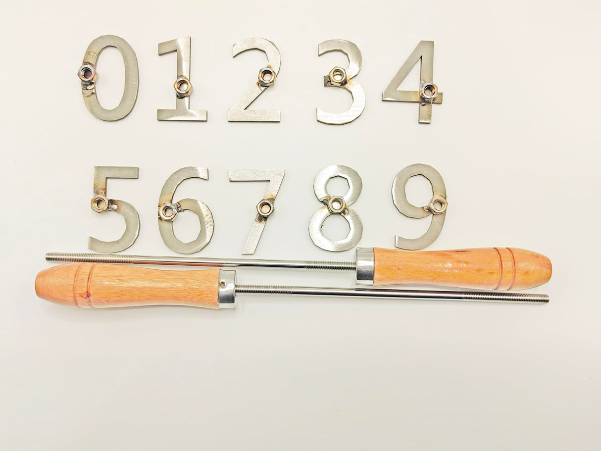 The set includes number branding irons ranging from 0 to 9, giving you the flexibility to create personalised imprints effortlessly. Accompanied by two changeable 10-inch wood handles, you can easily customize your approach and add a unique flair to your creations.