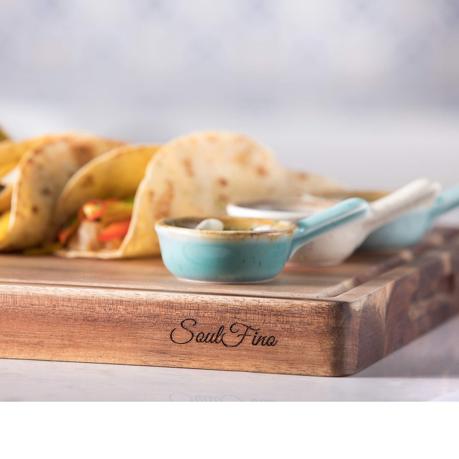 - ✅ Serve in Style – SoulFino Acacia Chopping Board Looks Great on any Kitchen Counter, Offering a Clean and Elegant Look that Blends in with All Types of Décor. Can Double as an Attractive SERVING TRAY or Trivet. Side Handles Make It Convenient to Use this Chic Board to Serve Sliced Meats, Cheese, Fruit & More.