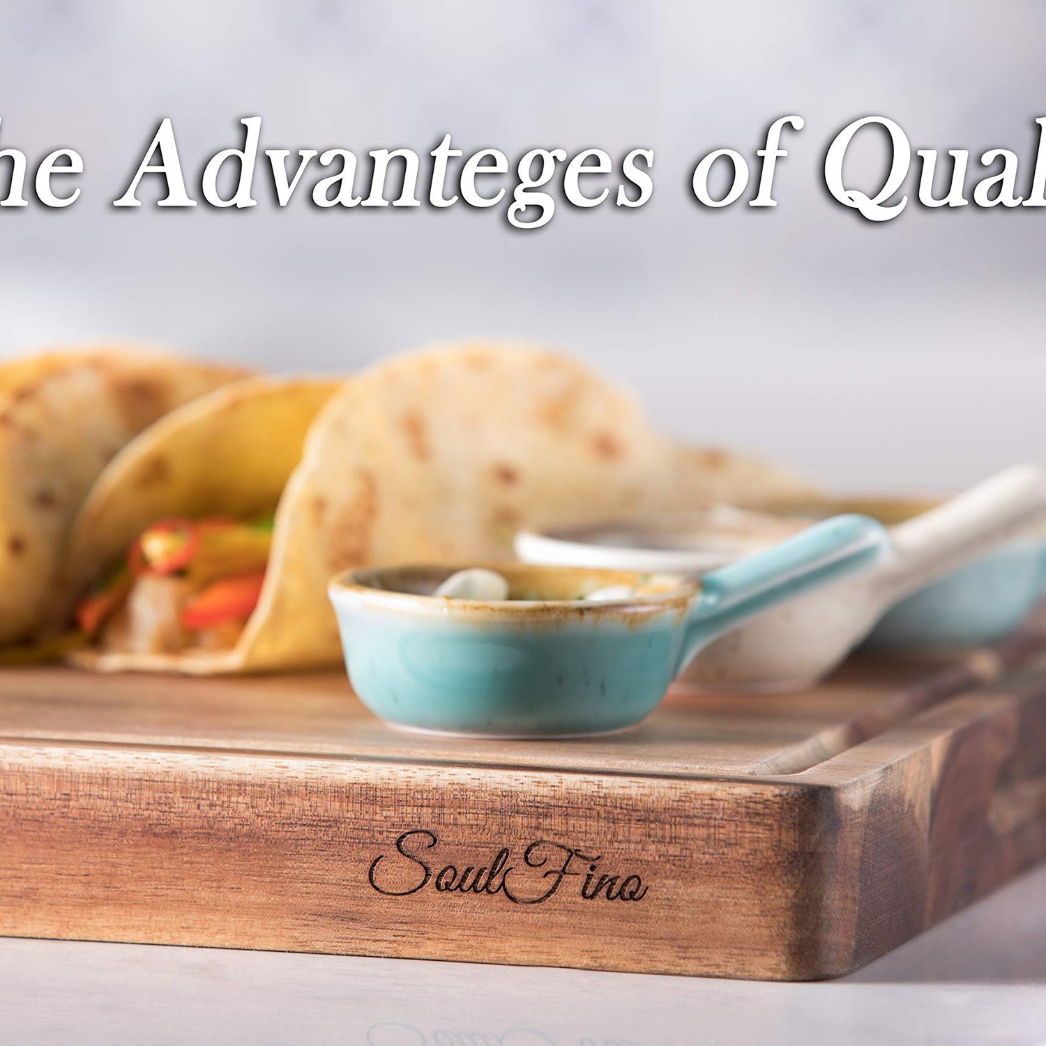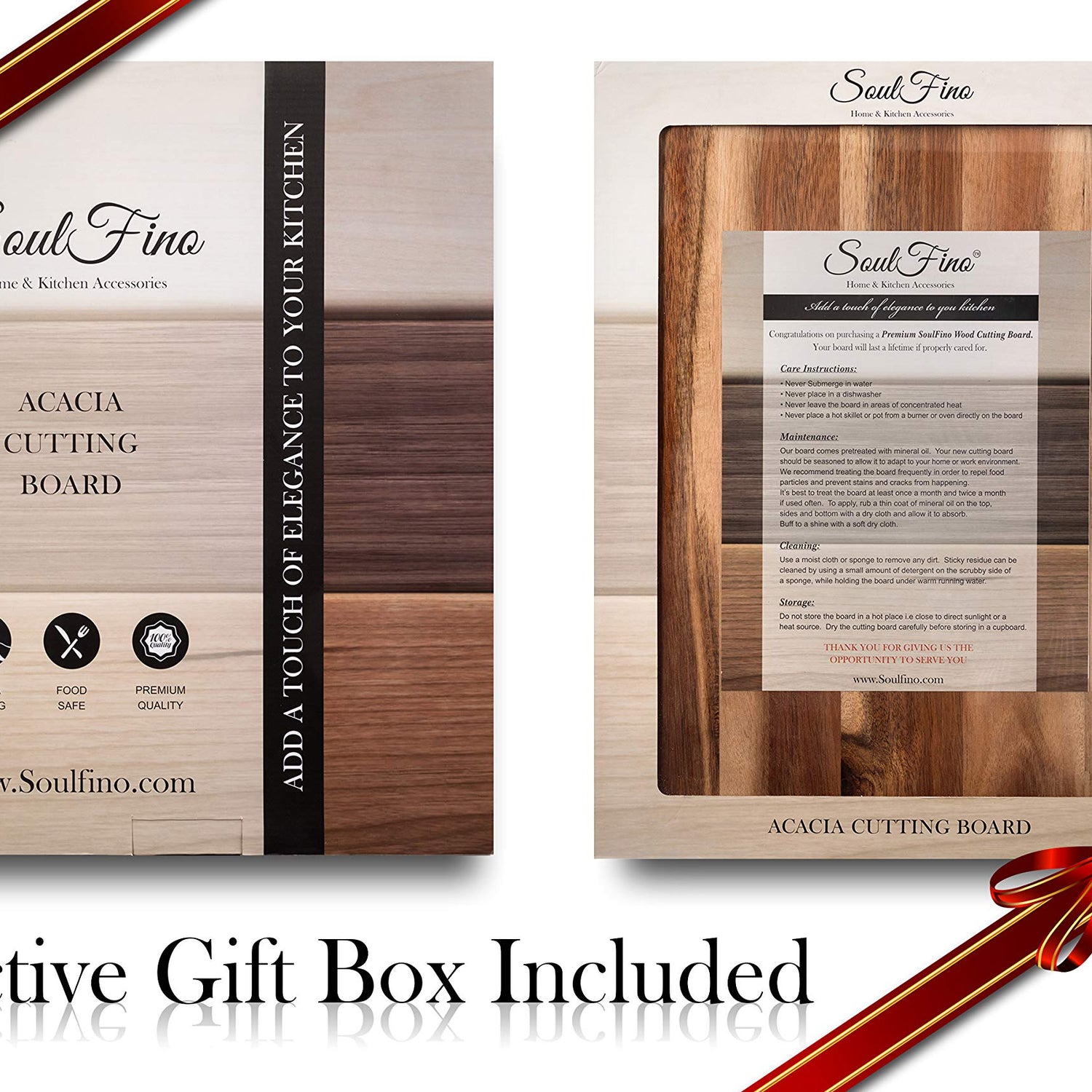 - ✅ Outstanding Quality – SoulFino has a full line of high quality, natural wood cutting boards, including maple wood and bamboo chopping boards. Check our storefront for more. Acacia is a great kitchen choice, unlike plastic or synthetic materials. Acacia is a very attractive wood, with distinctive color and grain patterns that make a definitive style impact. Great buy for cool kitchen stuff, a bridal shower present, wedding present, or a housewarming gift.