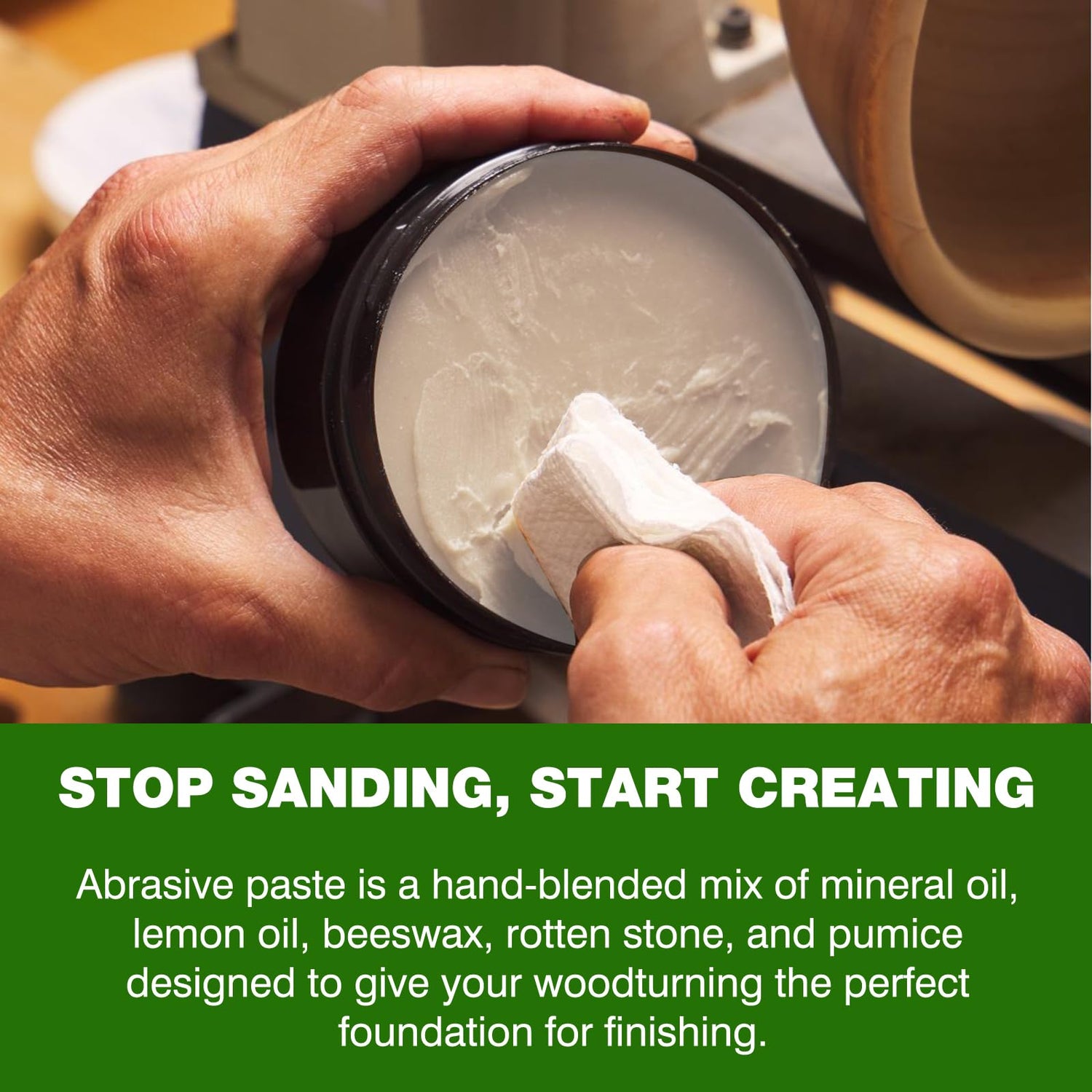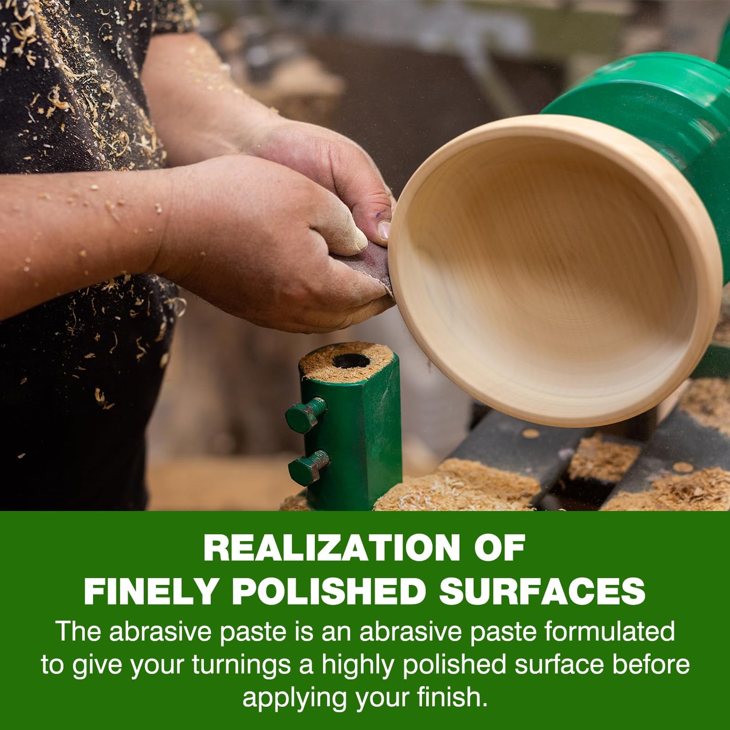 - GIVE YOUR WOOD A NEW LOOK: abrasive paste is a creamy, fine abrasive that greatly reduces the scratches left by sandpaper and leaves a smoother surface. Use the abrasive paste as a final sanding step in woodturning for a fine-gouged surface before applying the micro-fine abrasive paste, or go straight to the wax or oil-based finish of your choice