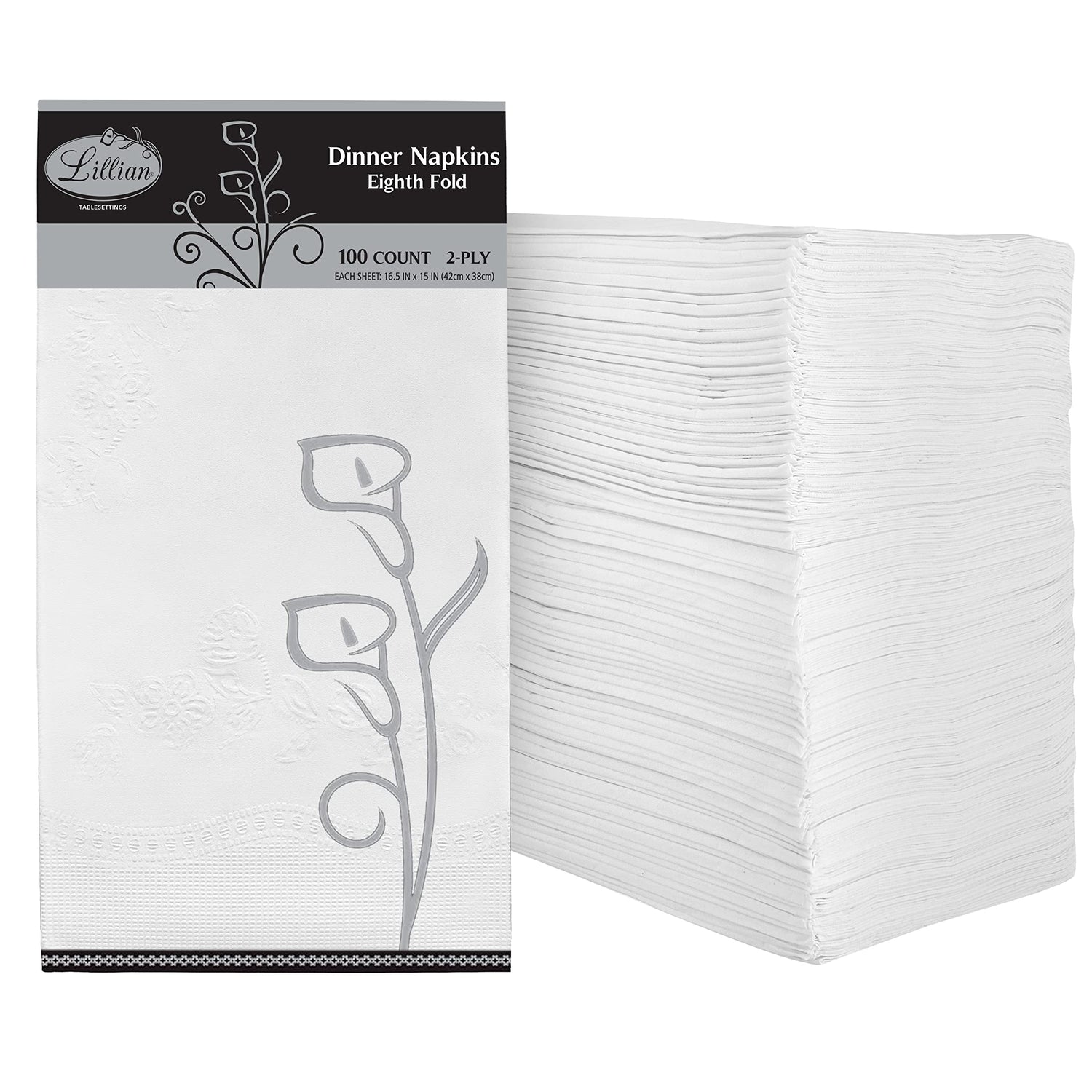 Details: Lillian Premium White Napkins, 1/8 Fold Dinner Napkin, Value Pack 100 Count
