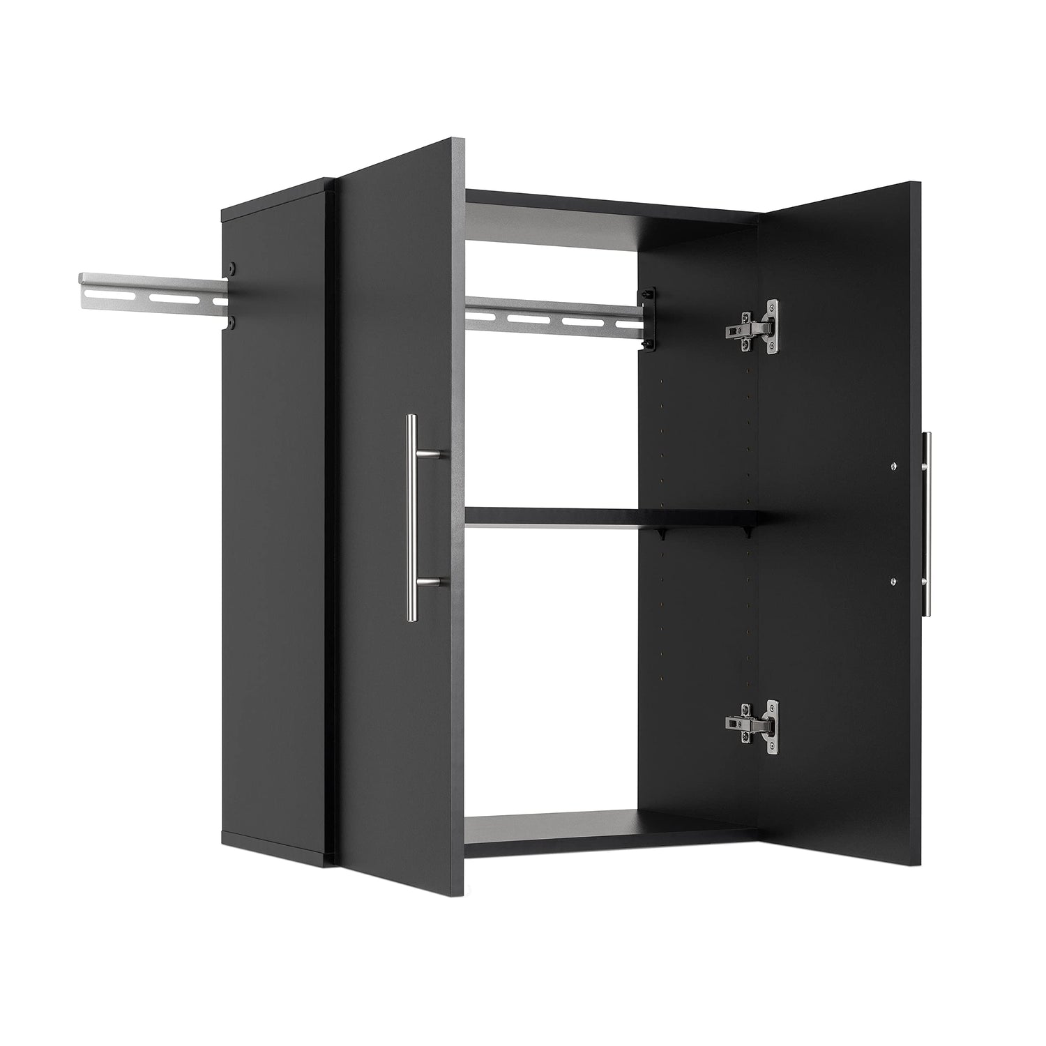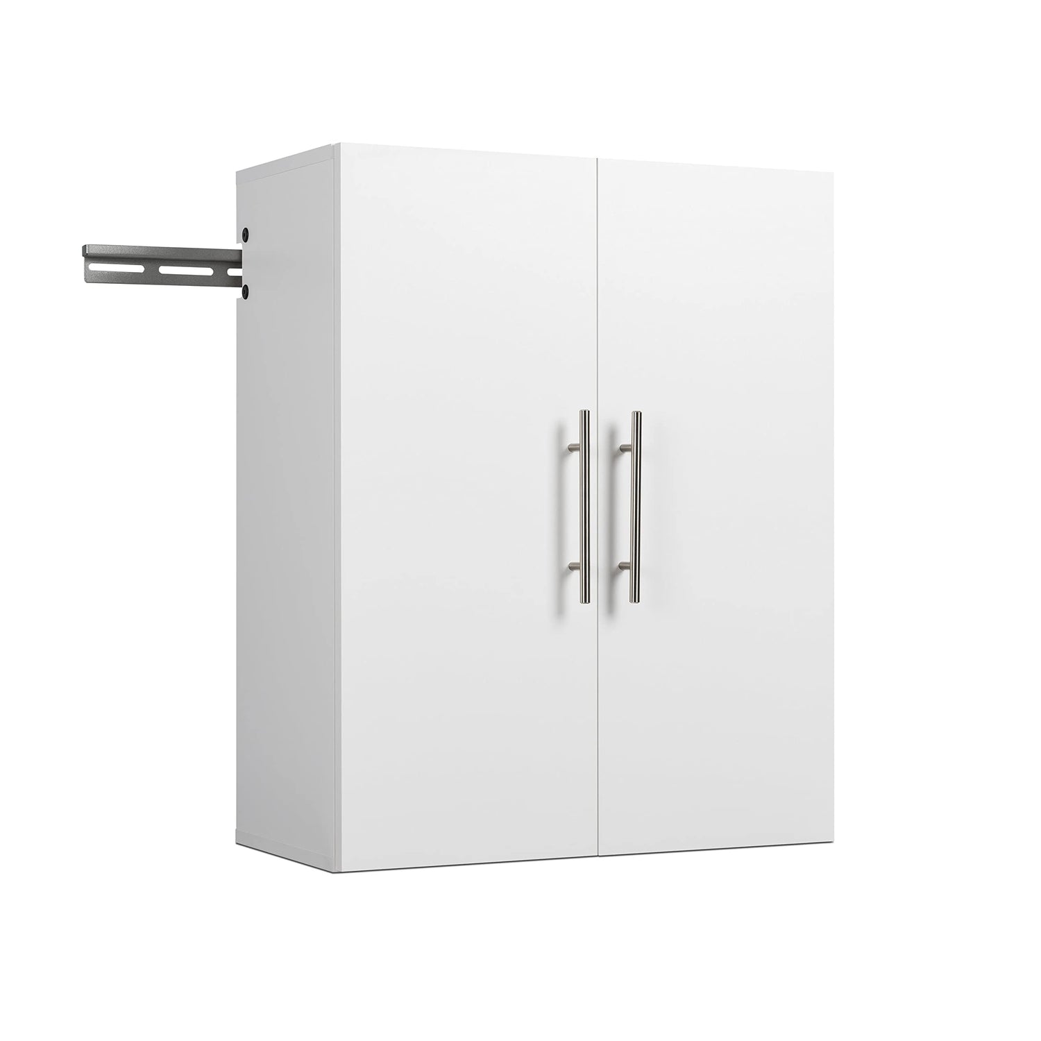 Details: The Hang-ups 24" Upper Cabinet offers versatility for your ever changing storage needs in the garage, laundry room, office or workshop. The Upper Cabinet mounts securely to the wall with a heavy duty metal rail and hook system. The wall mounted feature ensures easy cleaning beneath the cabinets and protects your stored items from water & dirt. The Hang-ups Collection is constructed using laminated composite wood and features metal handles and adjustable hinges. This product ships ready-to-assemble and includes all hanging rails and fastening bolts. Add other cabinets from our Hang-ups Collection to create a storage system to convert any cluttered room into an organized space. Constructed from non-toxic, CARB-2 compliant, laminated composite woods. Ships Ready to Assemble and includes an instruction booklet for easy assembly. 5-year manufacturer’s limited on parts. Manufactured in Canada and meets all North American safety standards.