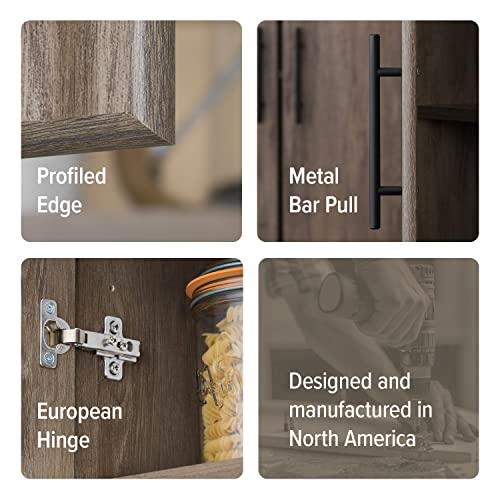 - FREESTANDING WARDROBE CABINET: Features a reversible soft-edge door on adjustable 6-way European style hinges, a hanging rail, and two fixed shelves complete with an elegant drifted gray laminate finish with matte black metal handles