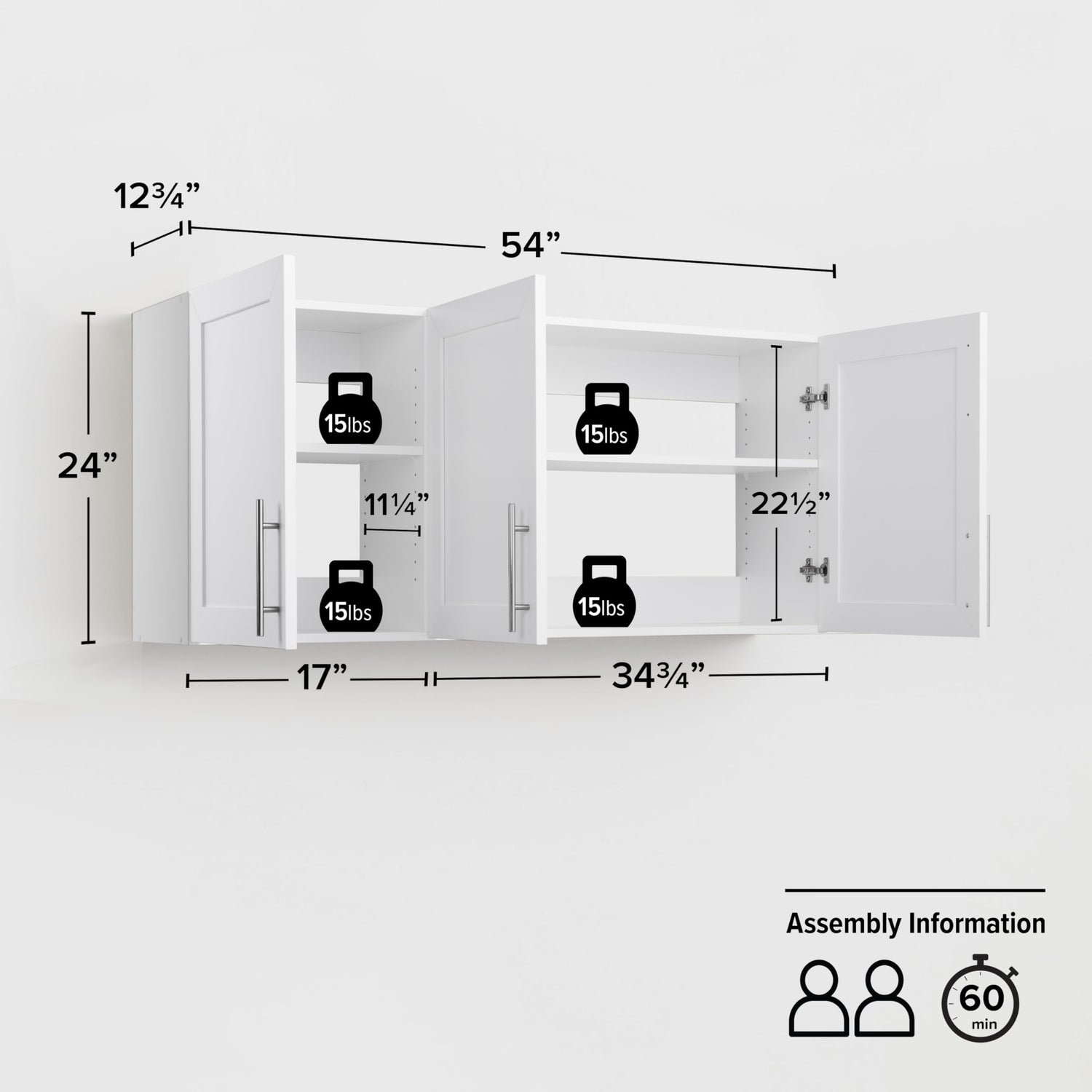 Prepac Elite 54" W Wall Cabinet with Panel Doors, White Storage Cabinet, Bathroom Cabinet, Pantry with 1 Adjustable Shelf 12.75" D x 54" W x 24" H, WSUR-1004-1