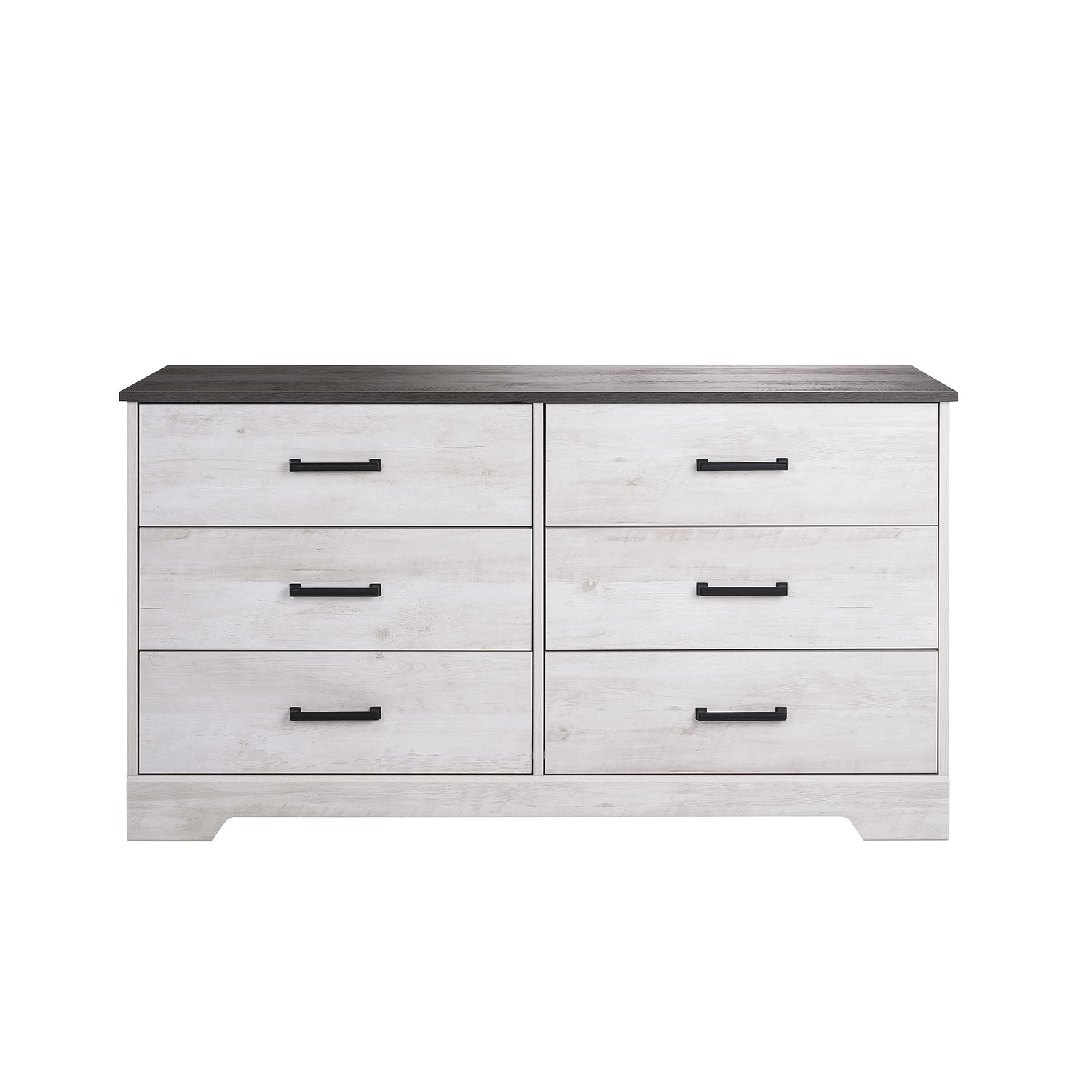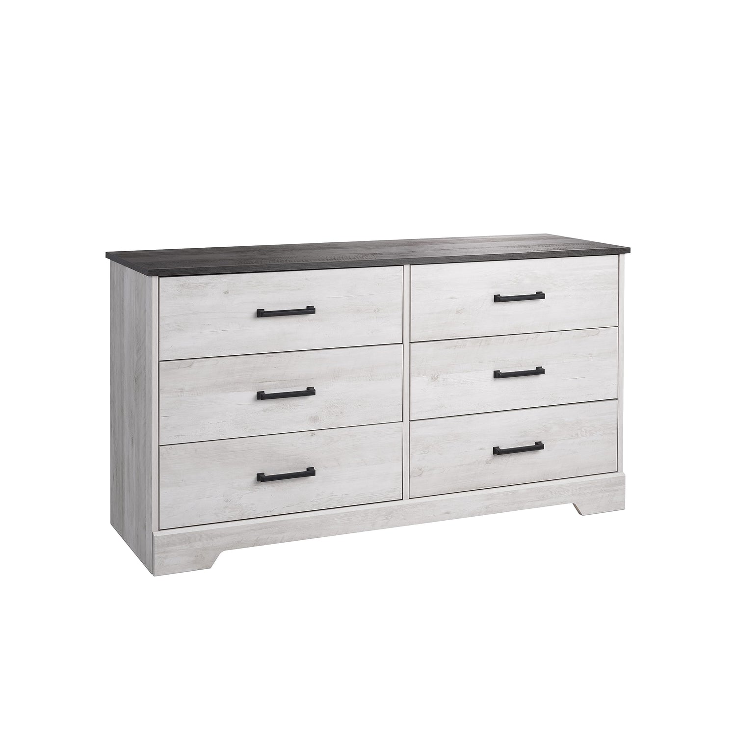 Details: Amplify your living space with the functionality and modern style of the Prepac Rustic Ridge Farmhouse Dresser. This stylish dresser chest features six smooth-gliding drawers with real wood pine drawer sides that extend far out for easy access to the contents inside while maintaining safety, providing ample storage space for your clothing and other belongings. Boasting a two-tone, whitewash finish with semi-matte black pulls and a rustic gray planked oak grain top, this drawer dresser complements your home with its rustic charm and touch of industrial style. It's the perfect space-saving organizer for bedrooms, walk-in closets, nurseries, living rooms, or entryways, and it can also provide a display area for small lamps, electronics, picture frames, and more. Constructed from durable engineered wood with sturdy back panels and a decorative laminate finish, this high-quality industrial dresser withstands years of reliable bedroom organization. The bedroom dresser chest measures 18.25in x 53.25in x 28.5in when assembled for the perfect fit in any room in your home that could use a delightfully homespun charm.